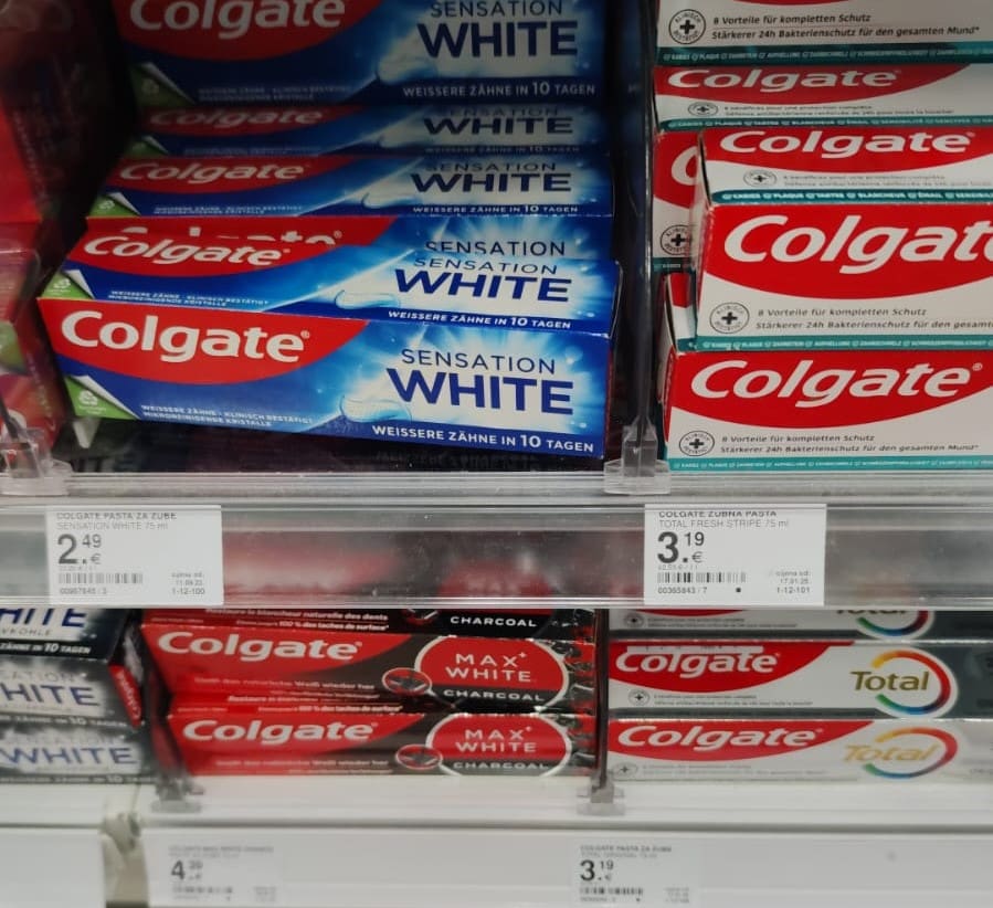 Primjerice, cijene Colgate paste za zube u Hrvatskoj se kreću od 2,10 do čak 5,75 eura. U Njemačkoj se cijene istih ovih proizvoda kreću od 0,95 do 3,95 eura.