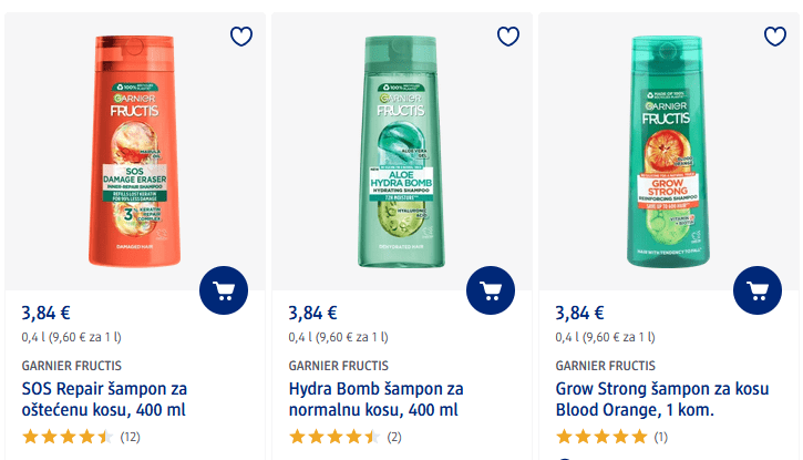 Garnier šampon za kosu košta u hrvatskom dm-u 3,84 eura, dok je u njemačkom cijena 2,75 eura.