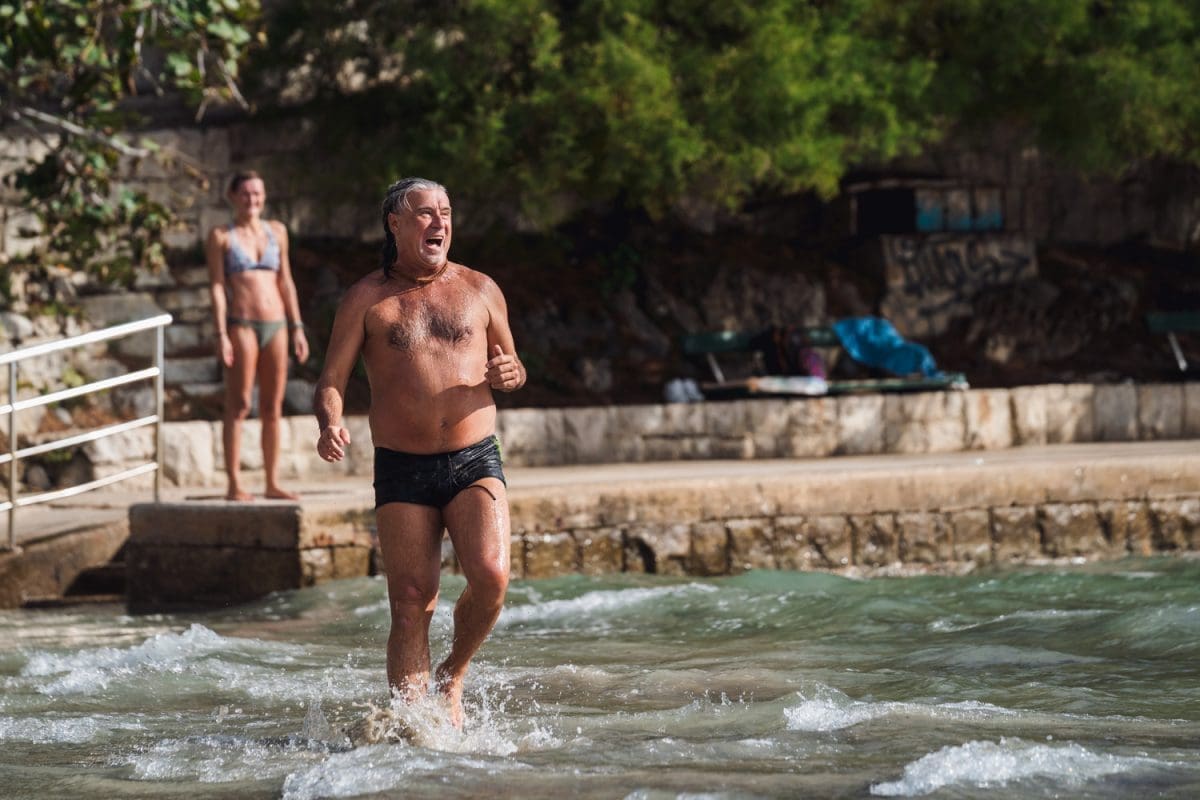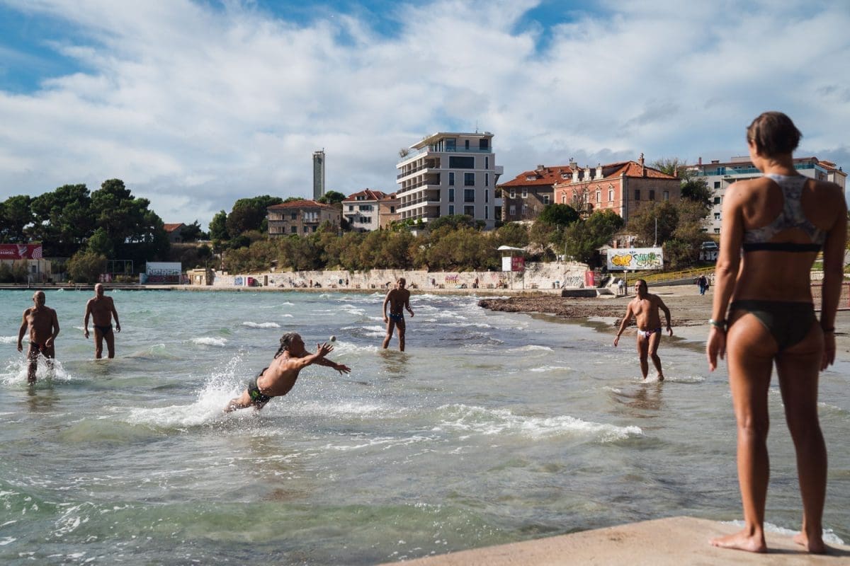 Drugi dan studenog neki su Splićani iskoristili za odlazak do najpopularnije splitske plaže Bačvice. I dok su neki samo šetali ili sjedili uz more i upijali slabašne zrake sunca koje su se nekako uspjele probiti kroz oblake, oni malo hrabriji su se odlučili prepustiti valovima.