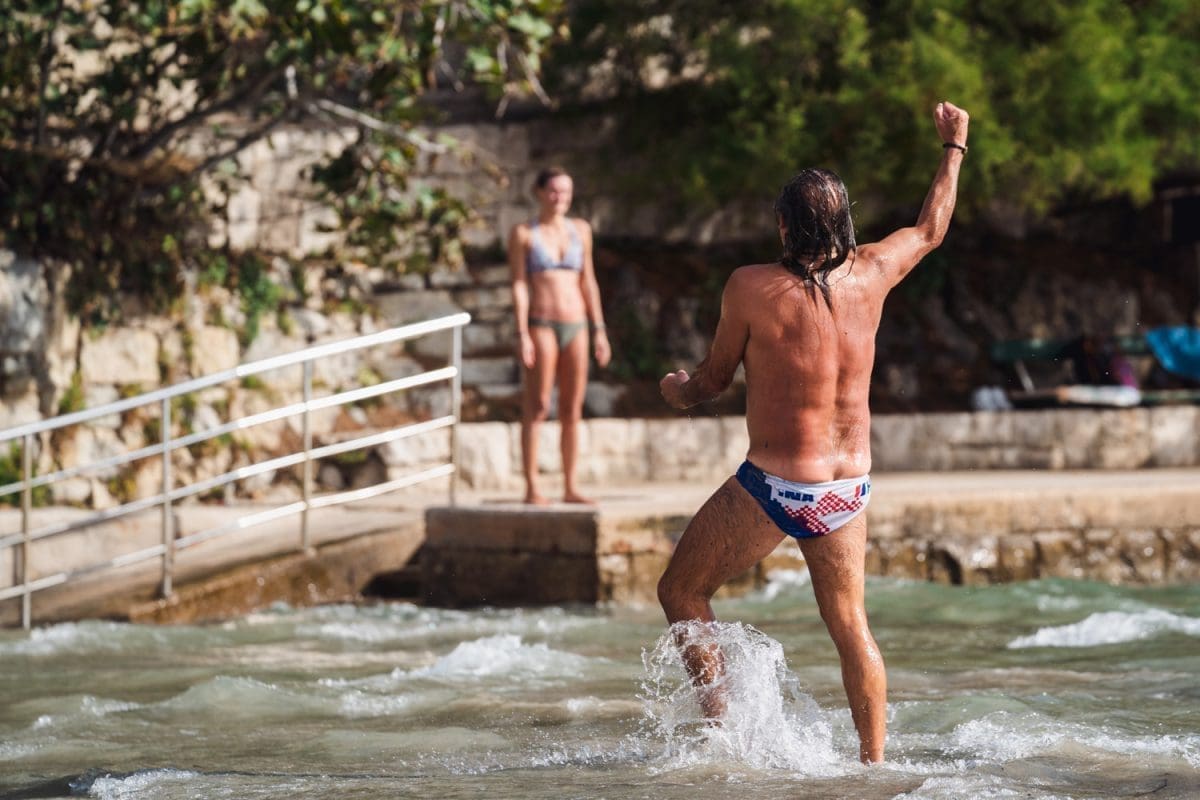 Dio ekipe bacio je i na picigin, a među njima je bio i poznati splitski pjevač, vjerni piciginaš Goran Karan.