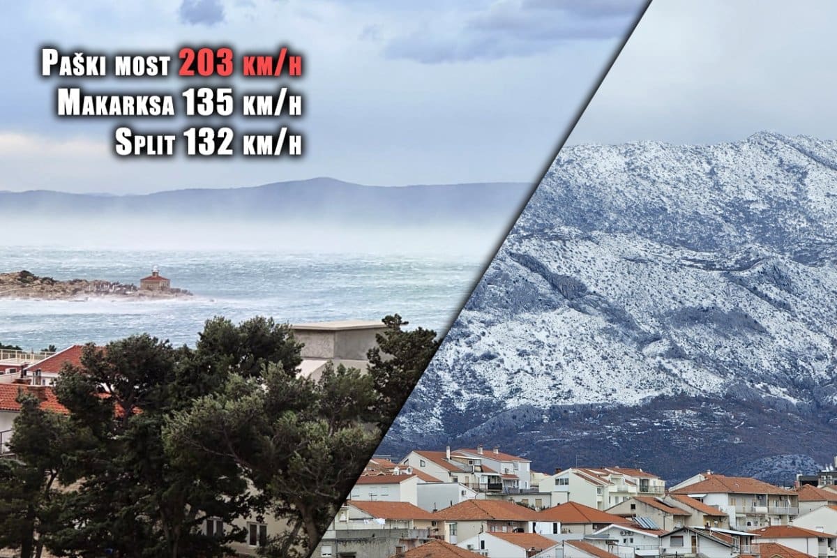 Glavno obilježje vremena je bura, ponegdje i tramontana. U Splitu su najjači udari dosezali orkanskih 132 km/h, a rekorder dana je Paki most s čak 203 km/h! Ipak, dok je u Splitu sredinom dana bura malo oslabila u odnosu na jutro, u Makarskoj puše olujnim prosjekom od čak 23 m/s i ima orknaske udare. Čak se iz Splita vidi morska prašina koju uzrokuje bura “s Biokova”… Bura je posljednji put orkanske udare na Badnjak u Splitu i Makarskoj imala 2003. godine.