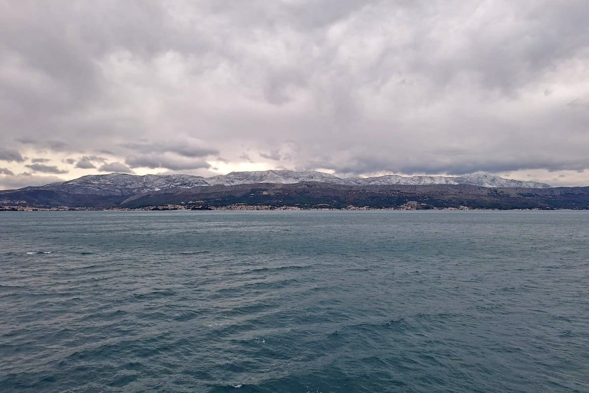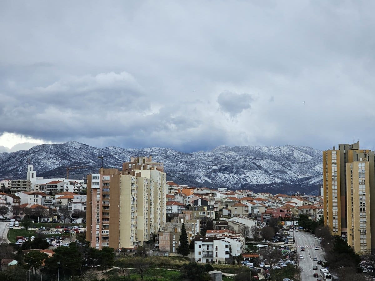 U Dalmaciji je oblačno i većinom suho, tek ponegdje ima pojave pokoje snježne puhulje. Sve dalmatinske planine su se zabijelile, a najviše snijega je palo na Kamešnici, Bioikovu i Mosoru. U višim predjelima Mosora palo je 30-ak centimetara snijega, a jutrošnji pogled iz Splita prema ovoj planini je pravi zimski.