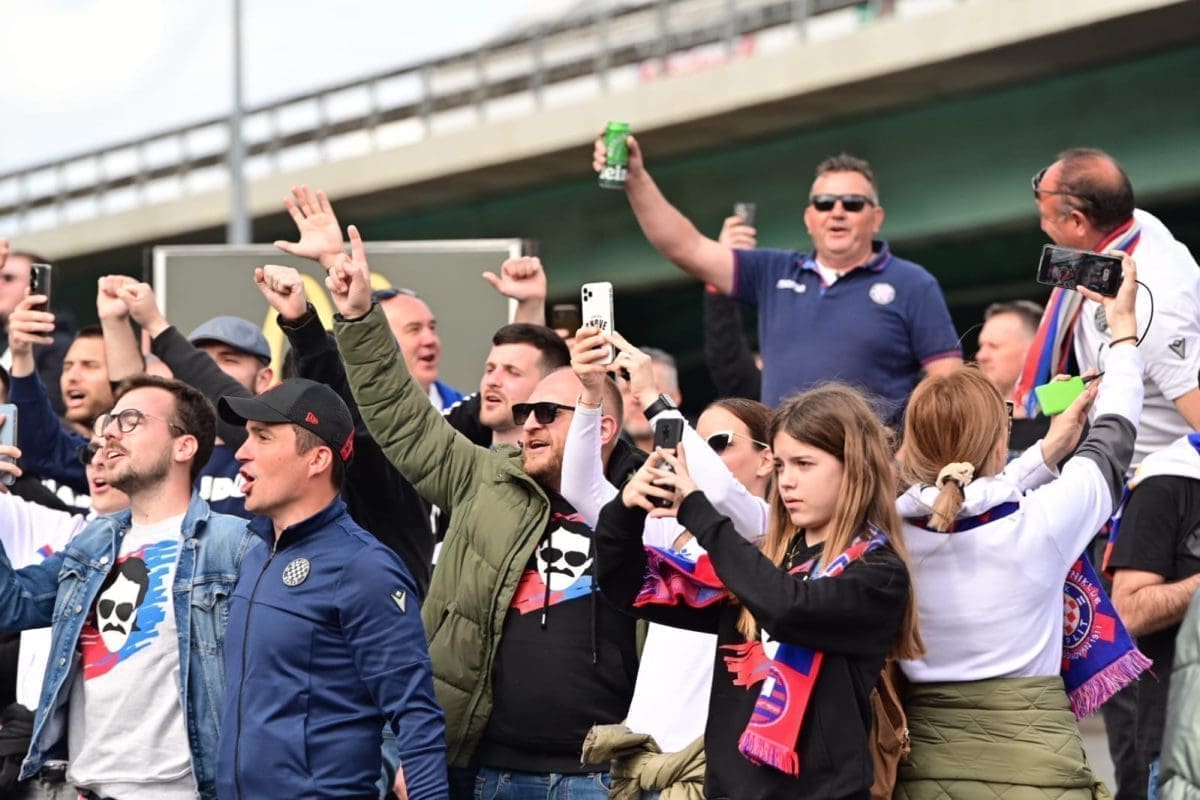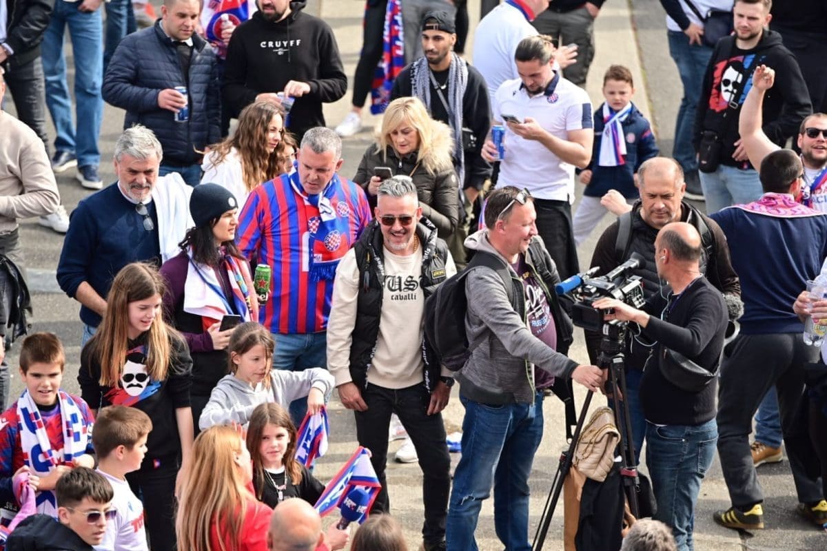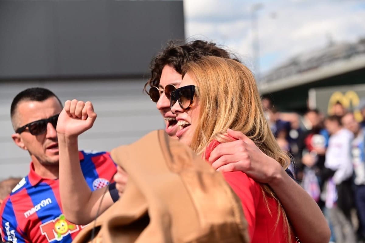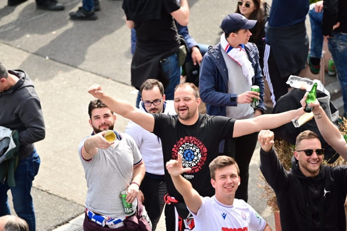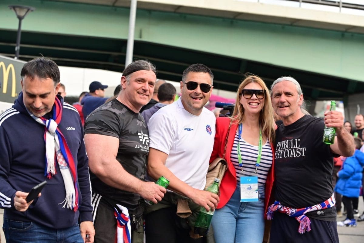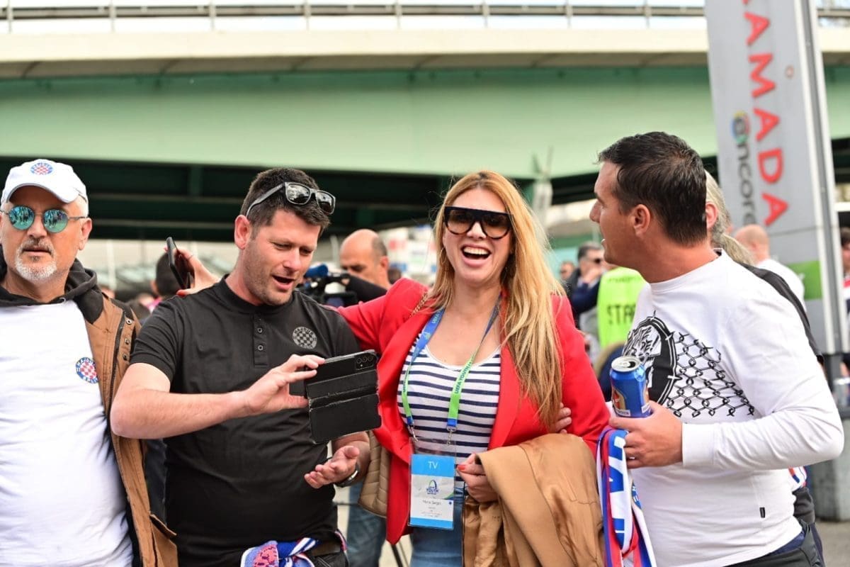 S navijačima je i poznata voditeljica Mirta Šurjak. Pjevaju se pjesme i pale se baklje ispred stadiona.