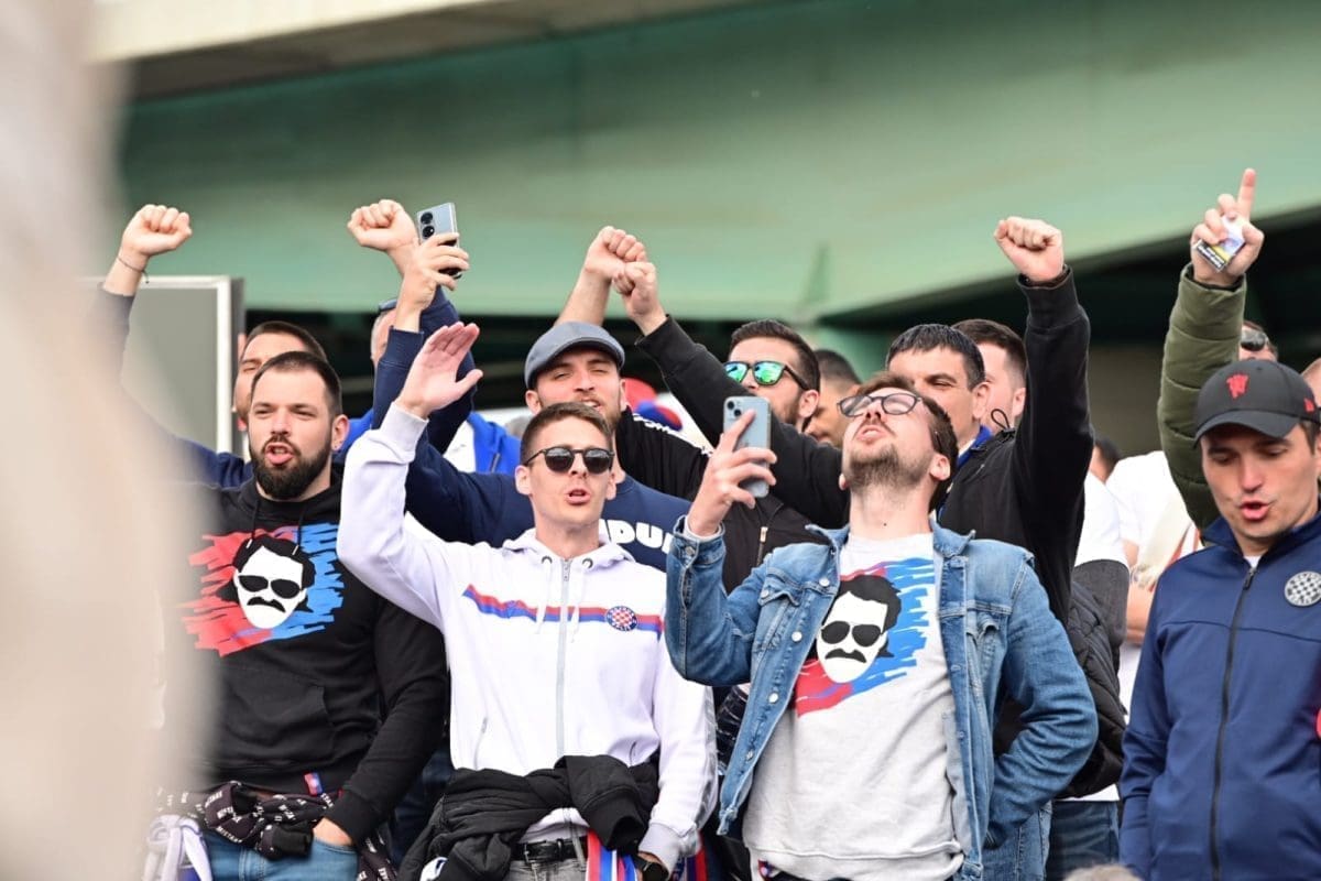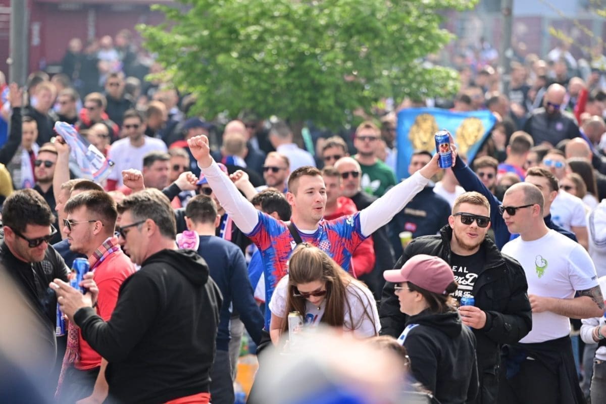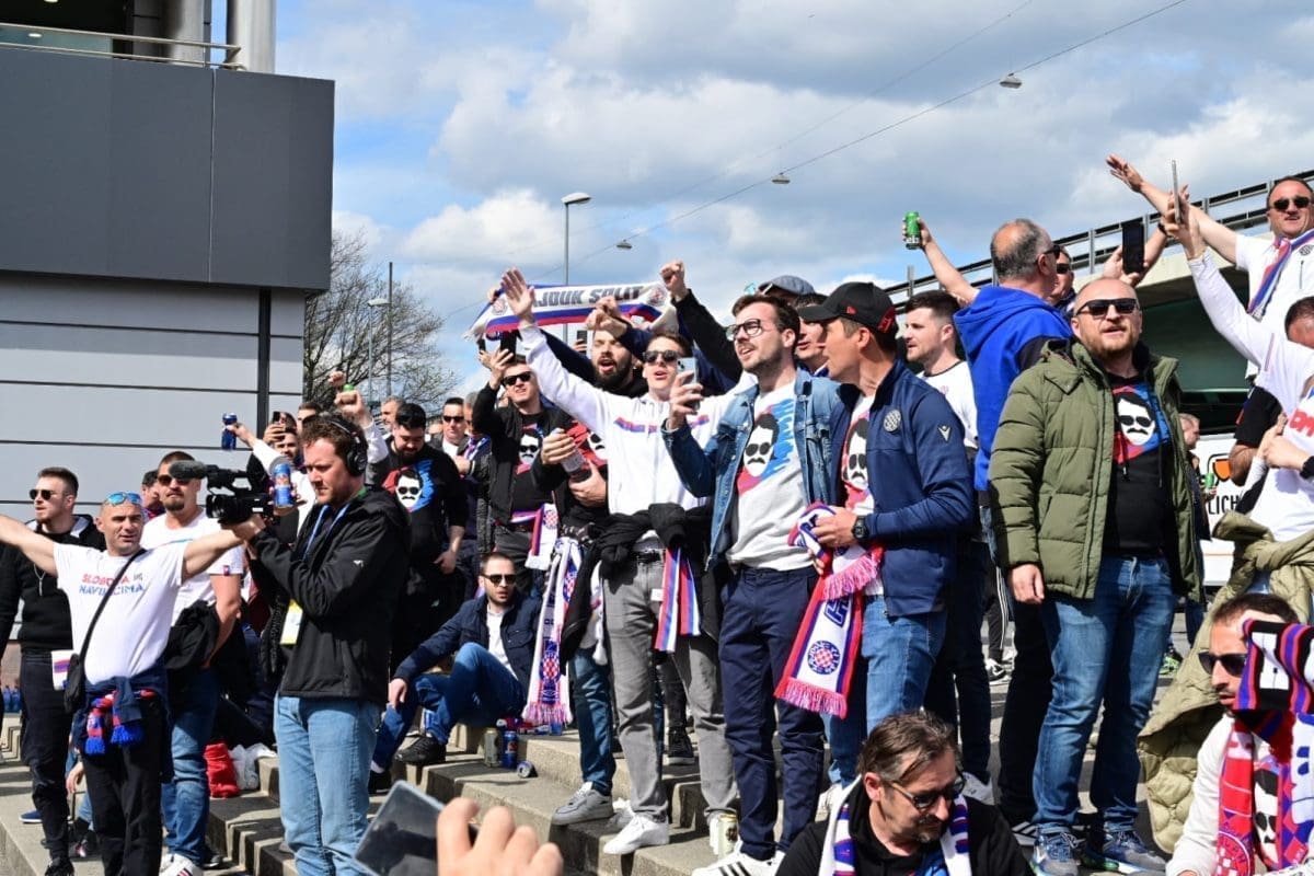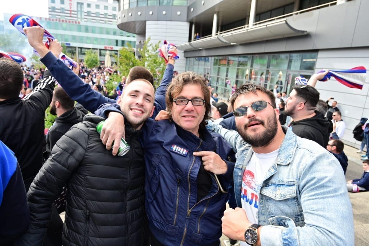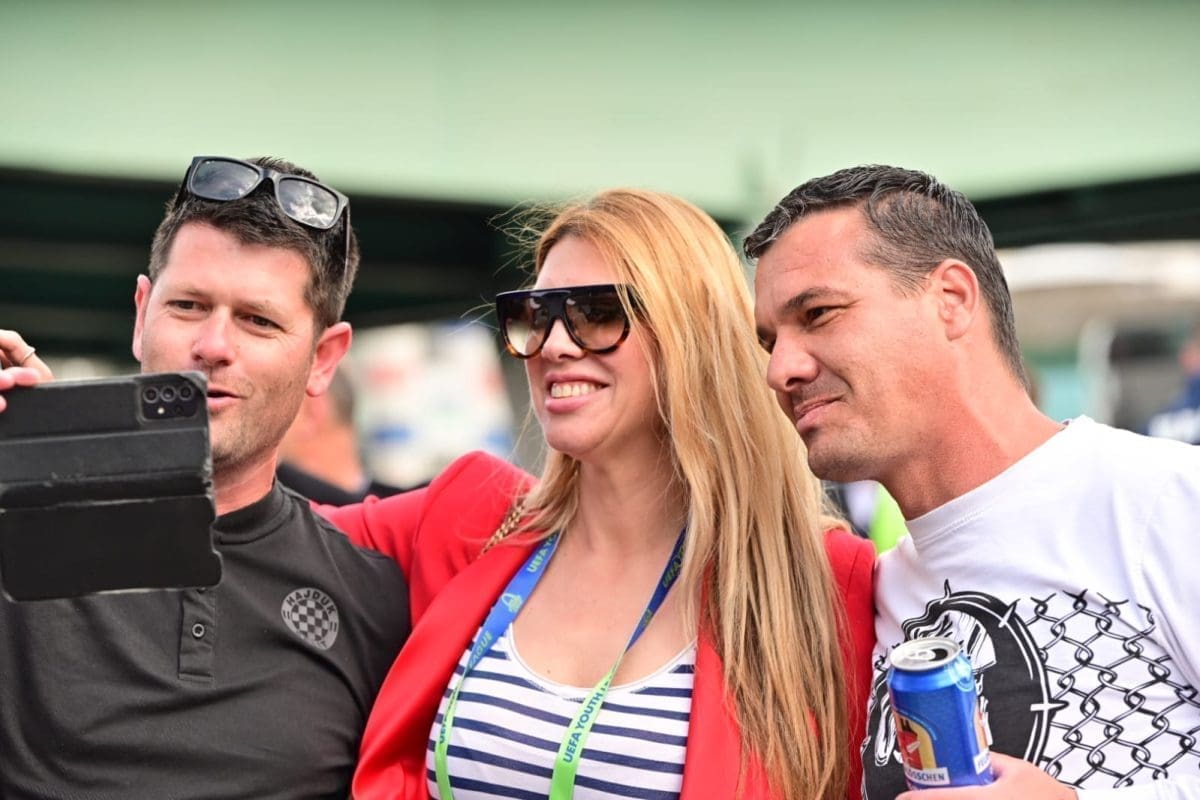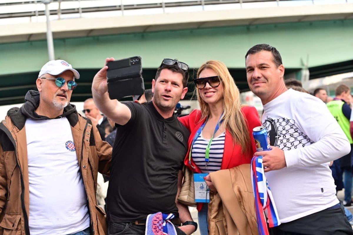 S navijačima je i poznata voditeljica Mirta Šurjak. Pjevaju se pjesme i pale se baklje ispred stadiona.