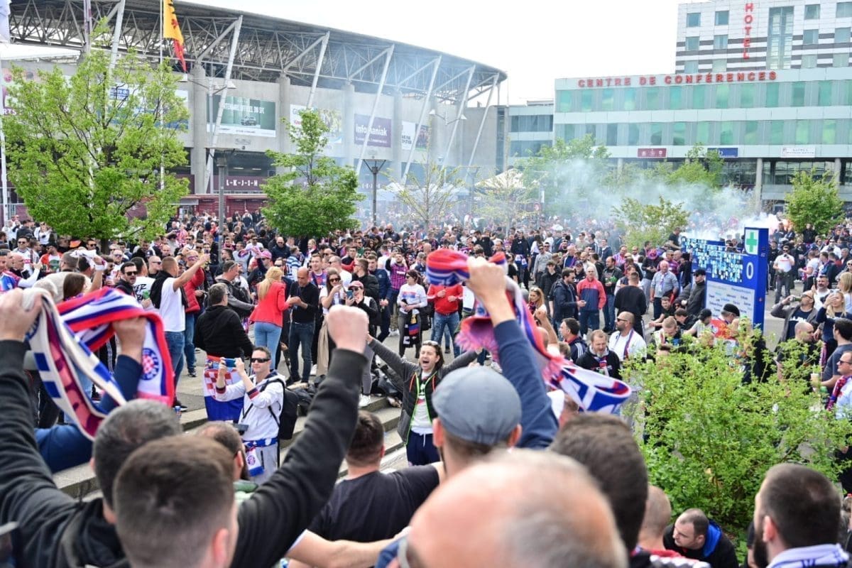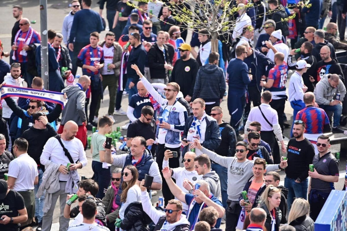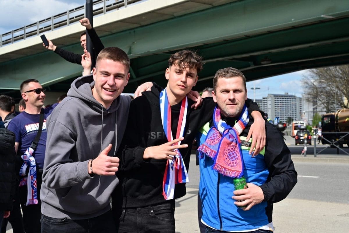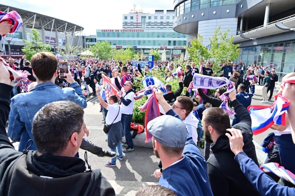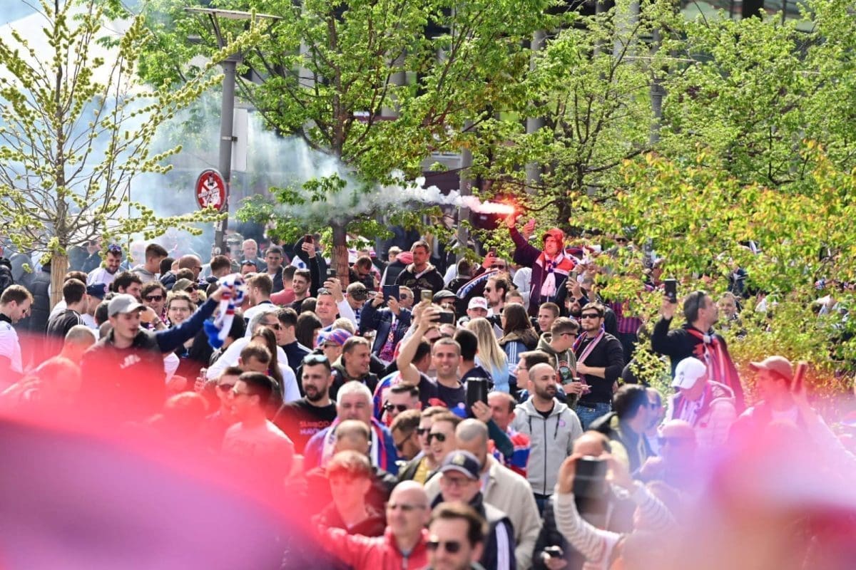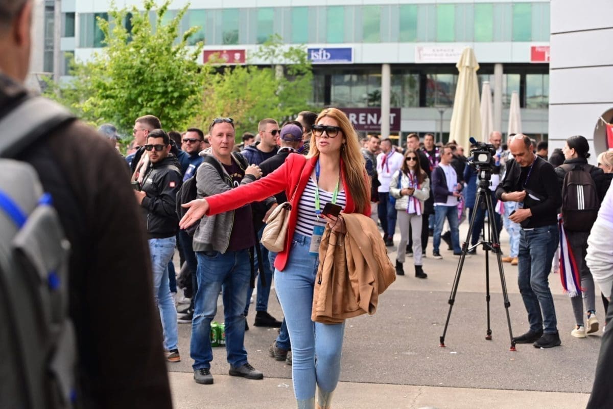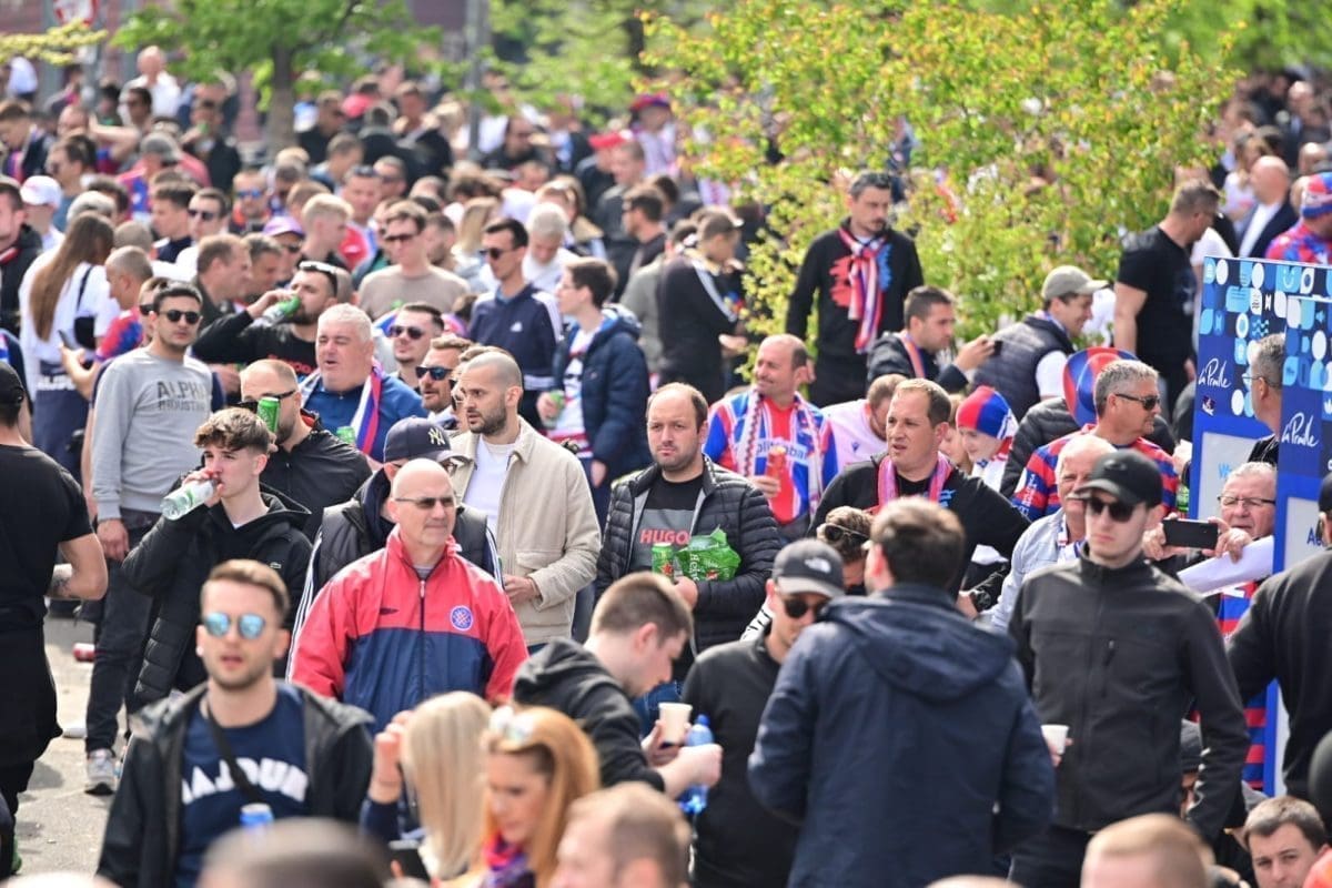S navijačima je i poznata voditeljica Mirta Šurjak. Pjevaju se pjesme i pale se baklje ispred stadiona.