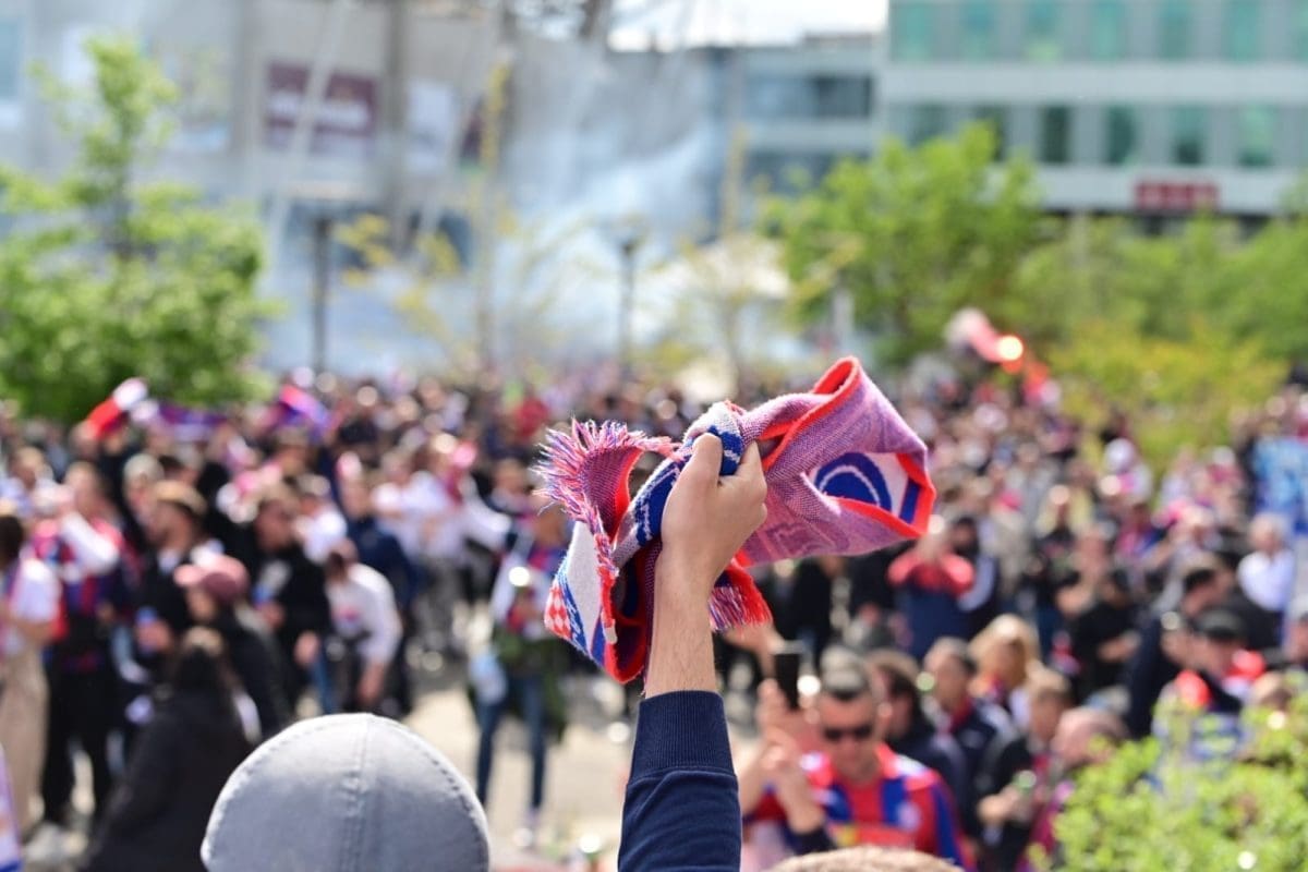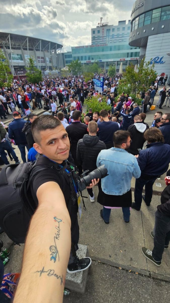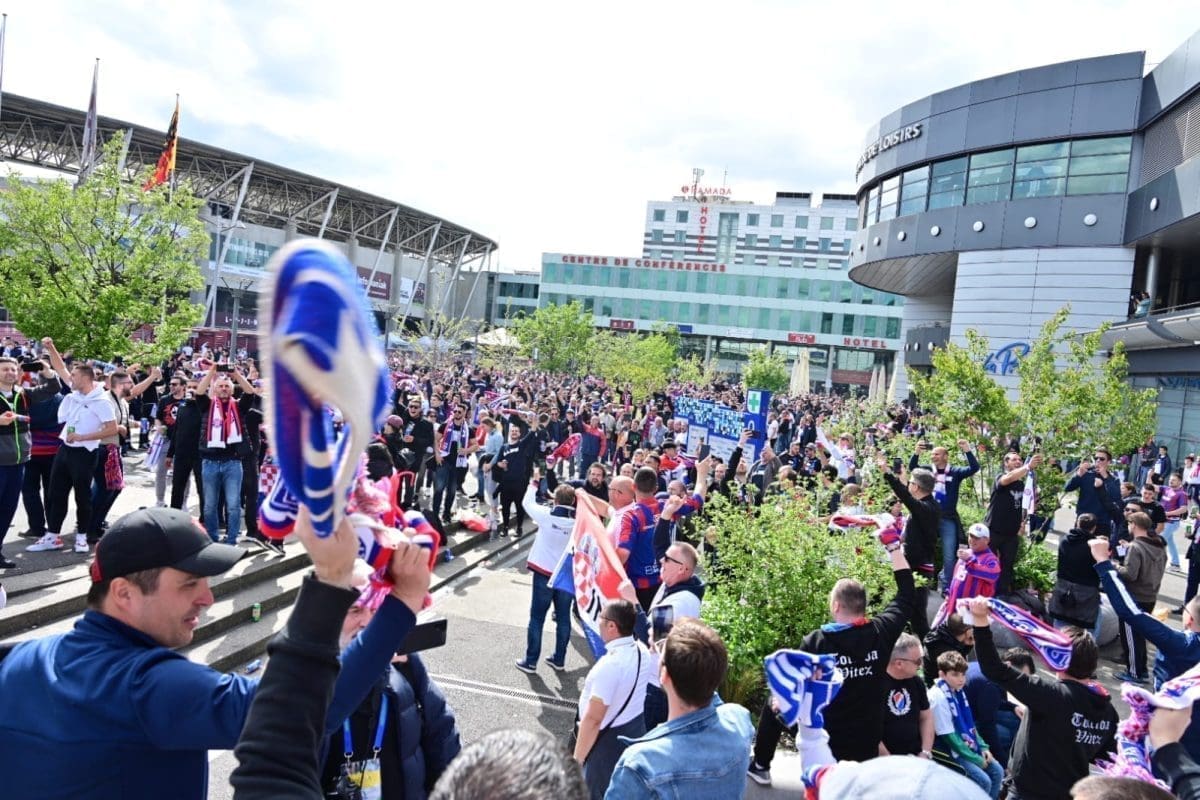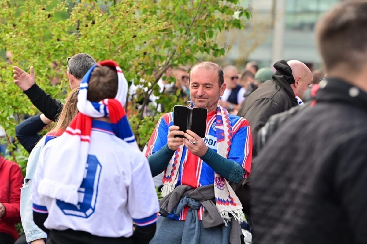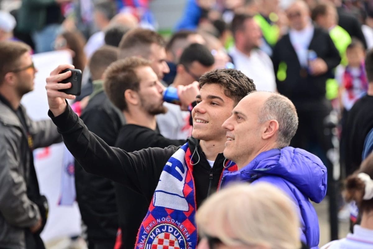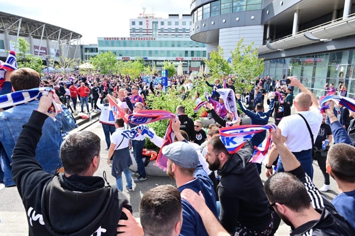 S navijačima je i poznata voditeljica Mirta Šurjak. Pjevaju se pjesme i pale se baklje ispred stadiona.