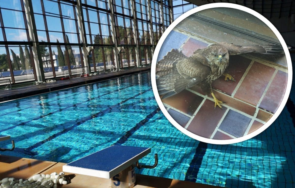 Ptica neobičnog i specifičnog izgleda 'Škanjac mišar' danas je iznenadila djelatnike centra bazena na Poljudu.