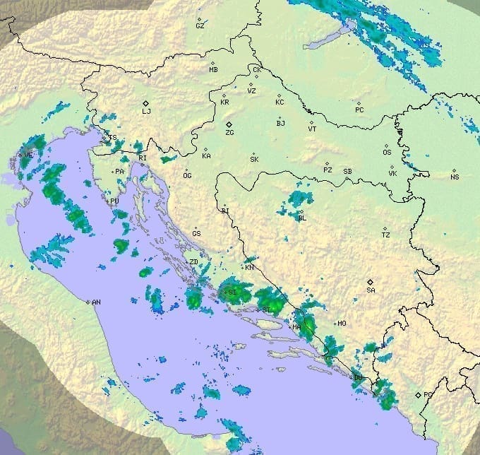 Iako se danas iznad nas zadržava polje visokog tlaka zraka, u višim slojevima troposfere stiže nam nestabilna zračna masa. Zbog toga je danas umjereno do znatno oblačno, povremeno uz kišu. Do 13 sati najviše kiše je palo na krajnjem jugu zemlje, ponegdje preko 20 litara po kvadratnom metru.