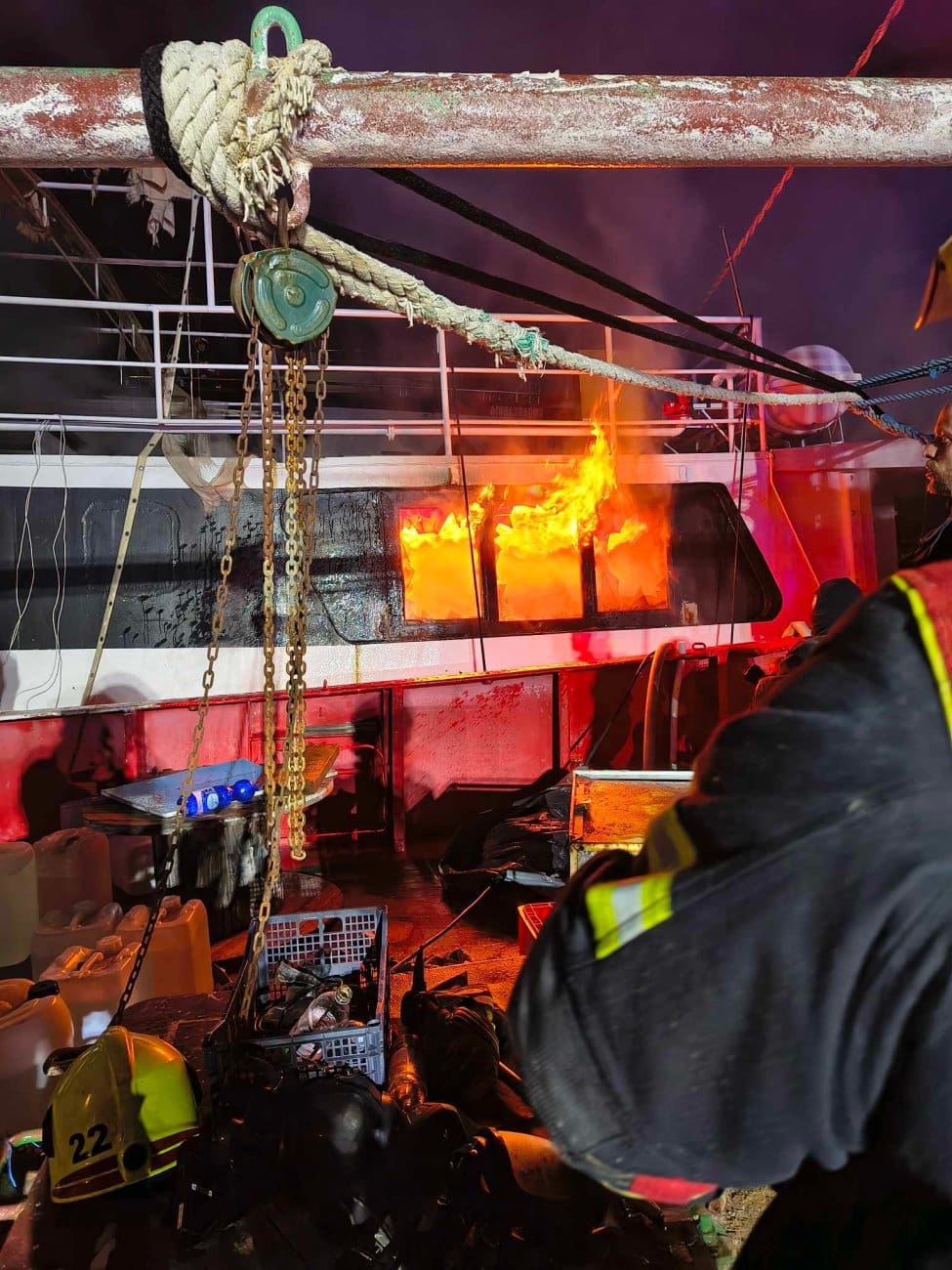 - Sinoć malo prije 22 sata u mjestu Bajnice, u luci, na vezu izbio je požar na brodu.