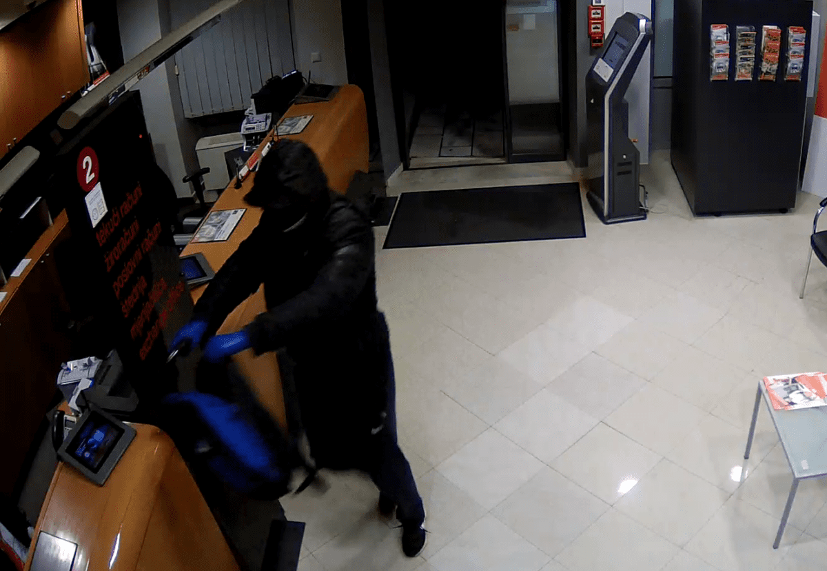 Jedan muškarac je visine oko 185 cm, srednje tjelesne građe, lokalnog naglaska. U trenutku počinjenja kaznenog djela imao je lice obojeno crnom bojom, a bio je odjeven u crnu jaknu s kapuljačom preko glave, donji dio tamnoplave trenerke, crne tenisice s bijelim potplatom i logotipom Nike, nosio je crno-plavi ruksak, a na rukama je imao plave PVC rukavice i koristio je pištolj.