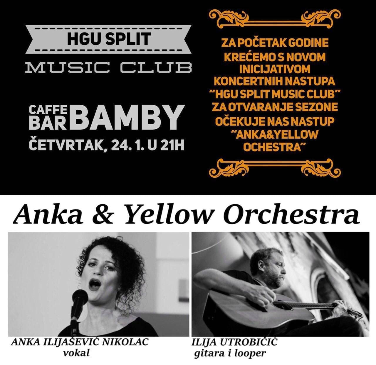 Na otvaranju sezone, ovog četvrtka (24.1. s početkom u 21 sat) u Caffe baru Bamby na Spinutu nastupa "Anka&Yellow orchestra".