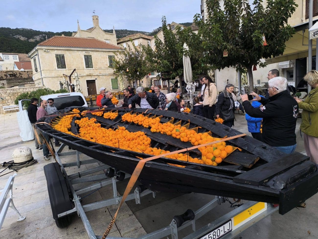 Uz brod stigla je i zemlja neretvanskih polja te sanduci mandarina koje su domaćini velikodušno podijelili na komiškoj Rivi. Neretvani su, kako kažu, „kuntenti da njihova prljavština gori u Komižu“. Ove godine, upravo će ta zemlja biti simbolički položena uz žrtveni brod – kao počast sv. Nikoli, ali i kao spona dviju obala.