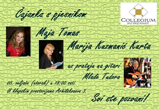 U klupskim prostorijama udruge Collegium Split kroz povijest (Arhiđakonova 3) u utorak (5. veljače) gošće su dvije splitske pjesnikinje, obje rođenjem Kuzmanić s Lučca.