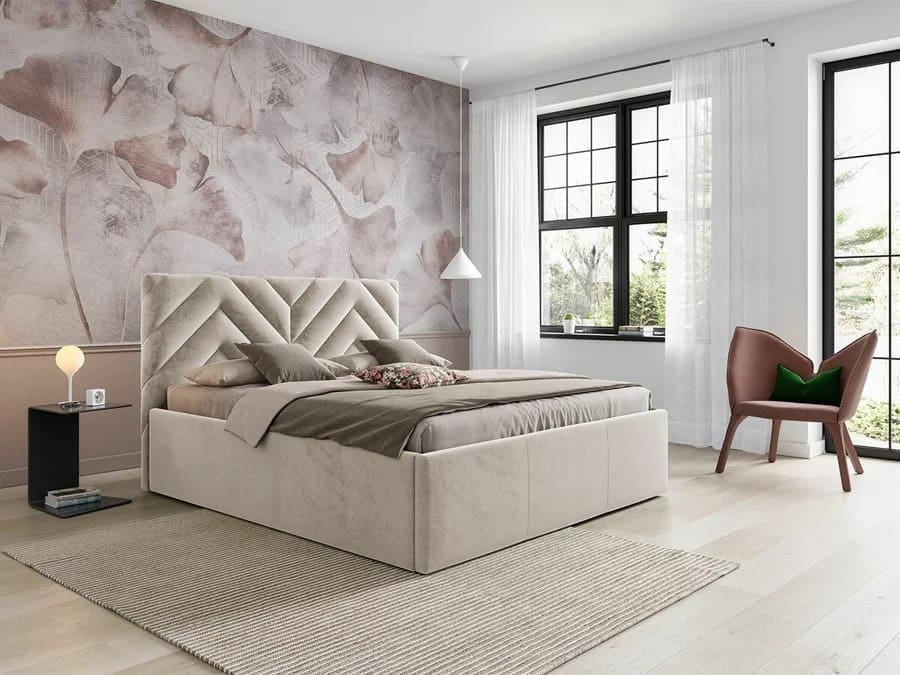 Teksture su veliki trend ne samo u spavaćim sobama. Ukratko, pojavljuju se posvuda, prvenstveno naravno na raznim tekstilima. Čak i u spavaćoj sobi možete posegnuti za baršunom, flisom ili omiljenim boucléom s mekim kovrčama. Ali teksture ne pripadaju samo presvlakama ili posteljini. Ove godine naveliko ukrašavaju i same zidove – a mora se primijetiti da u ovakvom obliku izgledaju zaista lijepo. Može biti 3D tapeta, ali se tekstura može postići i bojanjem. I u ovom slučaju, preporučljivo je odabrati samo jedan zid, koji će postati dominantan element sobe.