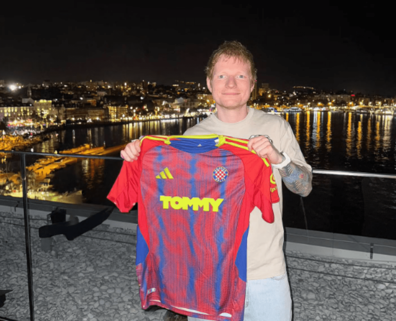 Poseban suvenir ponio je iz Splita: Hajdukov dres s vlastitim imenom i omiljenim brojem. Hajduk se fotografijom na kojoj Sheeran drži bijelo-plavi dres pohvalio na društvenim mrežama uz poruku: