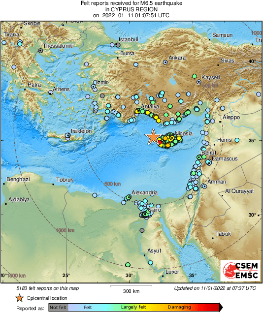 Snažan potres magnitude 6.5 prema Richteru rano jutros je zatresao područje Cipra.