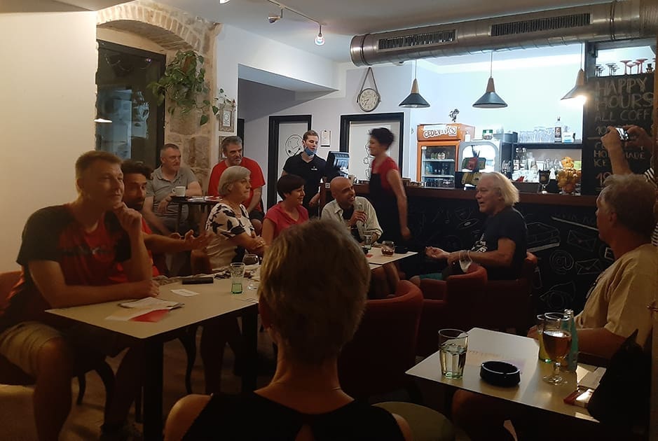 Aktivisti i drugi građani okupili su se u petak navečer u kafiću 'Odma iza', odmah iza Hrvatskog narodnog kazališta. Naime, upravo na fasadi zgrade u kojoj se nalazi spomenuti kafić, već godinama 'trune' prvi splitski mural.