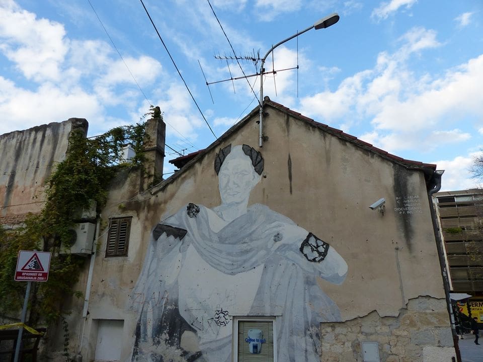 Riječ je o muralu cara Dioklecijana kojeg su 1983. godine oslikali maturanti Umjetničke škole pod mentorstvom profesora Gorkog Žuvele, a cilj je bio osvježavanje tada zapuštene okoline splitskog hrama kulture. Upravo tim motivom se vode i članovi GIST-a inicirajući obnovu ovog murala, ali i oslikavanje kuće Jelaska Bućanovim najpoznatijim djelom - Žar pticom.