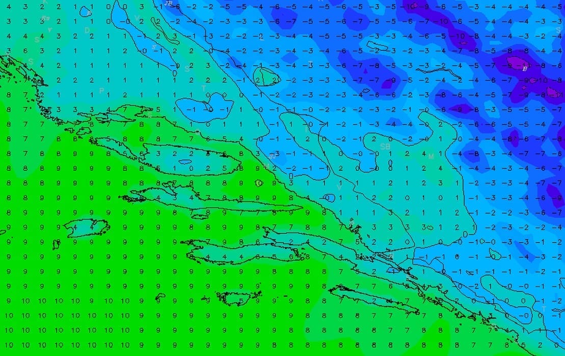 Danas nas očekuje umjereno do znatno oblačno vrijeme. Tijekom dana bit će sve oblačnije s juga pa će osobito popodne kiša zahvatiti južnu i dio srednje Dalmacije. U višim planinama će biti i snijega. Sjevernije od Šibenika očekuje se suho. Puhat će većinom slaba do umjerena bura i levant, na moru južne Dalmacije prolazno jugo. Navečer na sjeveru jačanje bure. Minimalne jutarnje temperature zraka od 2 do 10°C, najviše dnevne od 6 do 13°C.