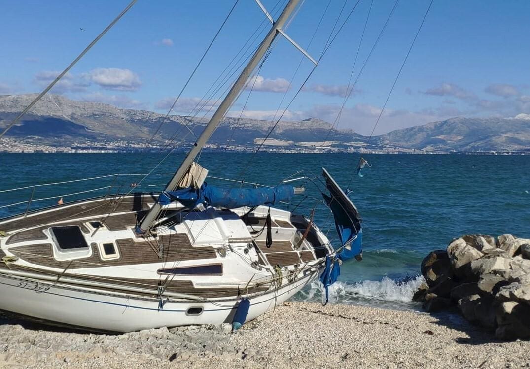 Tako su na Čiovu orkanski udari nasukali jedrilicu čija je fotografija objavljena na Facebook stranici Izgubljeno/Nađeno.