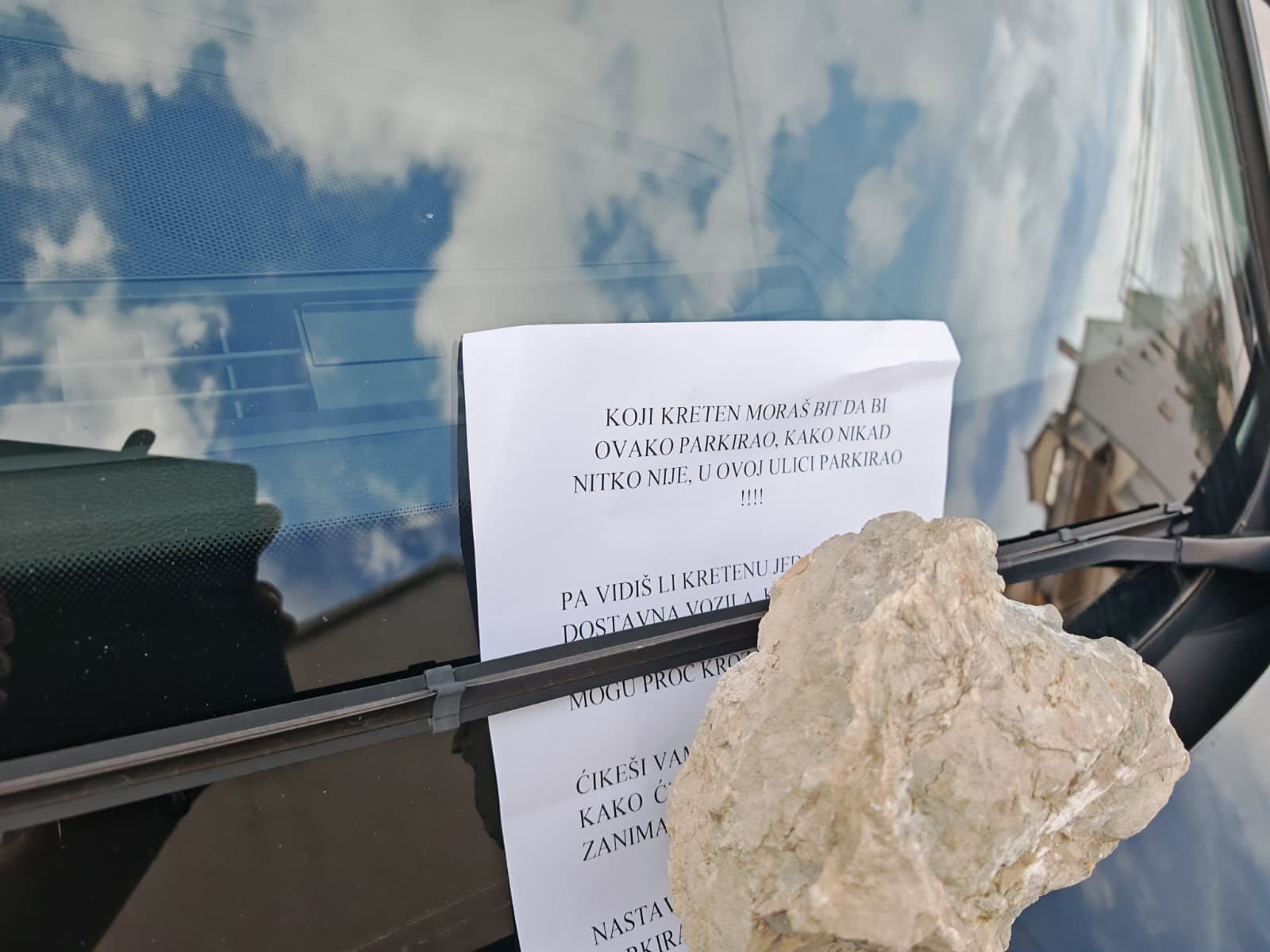 "Koji kreten moraš bit da bi ovako parkirao, kako nikad nitko nije, u ovoj ulici parkirao", dio je poruke tiskane na papiru A4 formata.