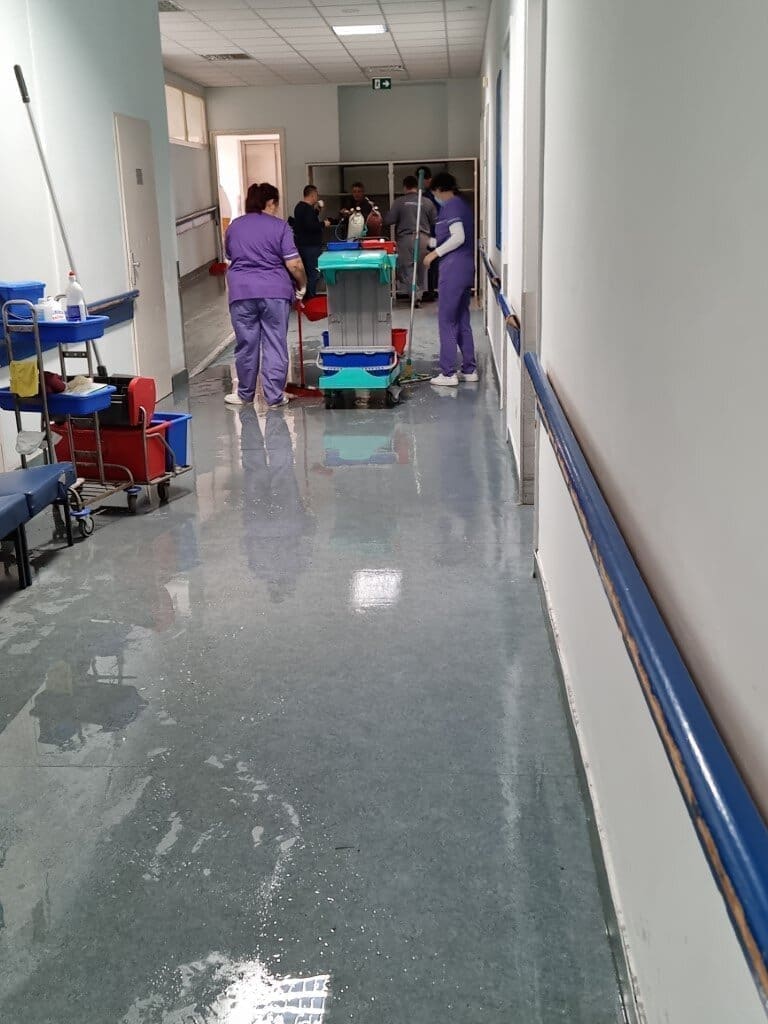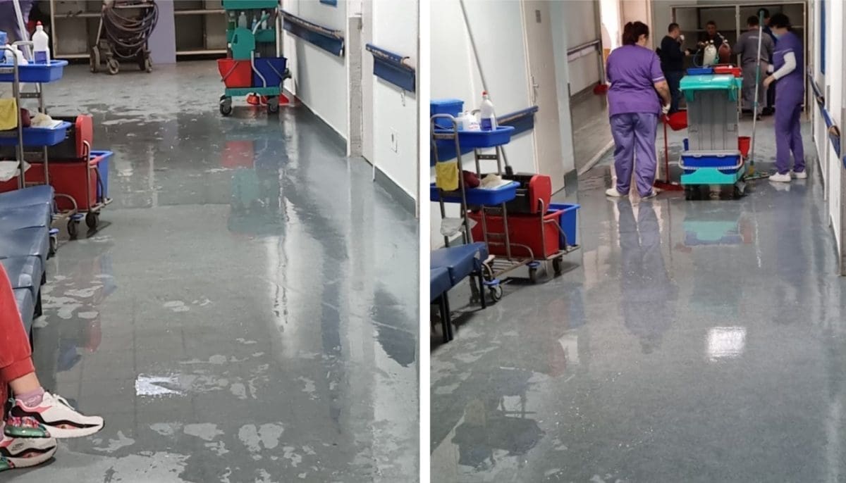 Djelatnici bolnice su se uhvatili posla i brisali vodu, a kako je izgledala današnja situacija, pogledajte u nastavku: