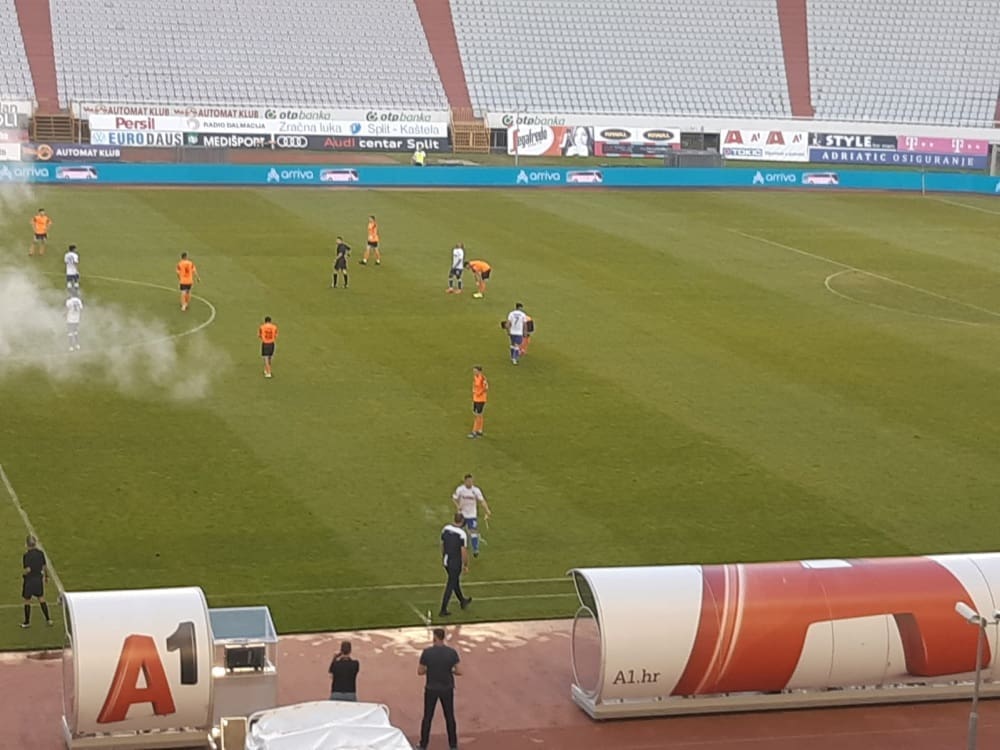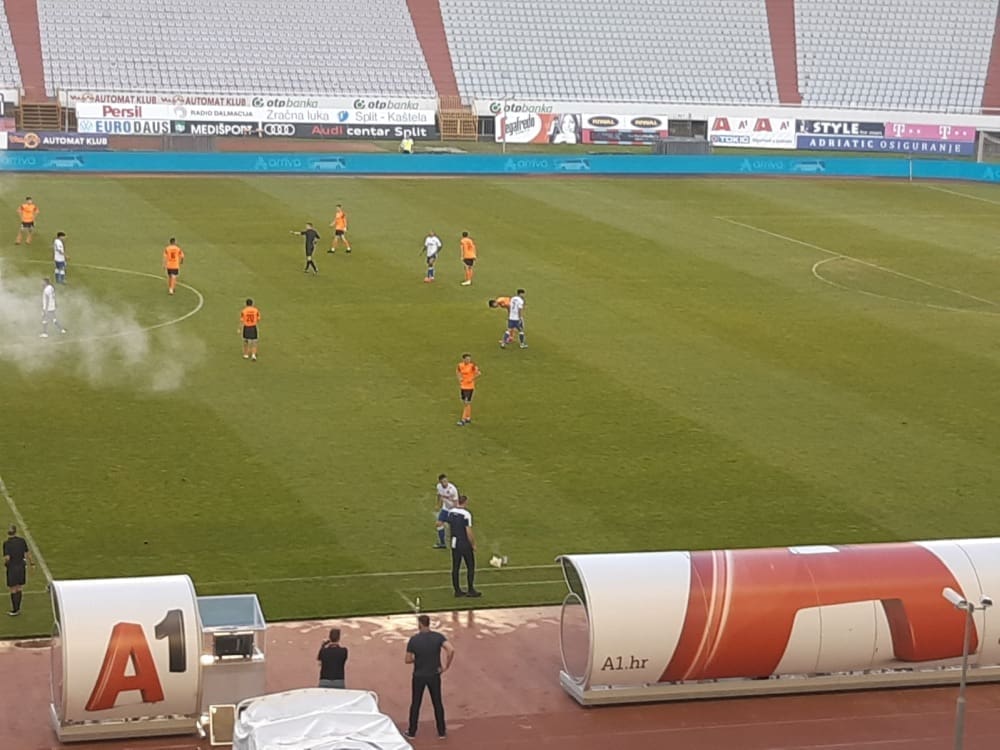 Iako se utakmica odgiravala bez publike, bilo je pirothenike. U 63. minuti na teren je doletjela signalna raketa.