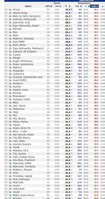 Podsjećamo, riječ je o službenim podacima Državnog hidrometeorološkog zavoda. Dodajmo na kraju da su pojedine postaje u mreži Pljusak.com (koja je neslužbenog karaktera) lokalno zabilježile vrijednost od čak 31 stupanj, kao što je to bio slučaj u Hrvacama.