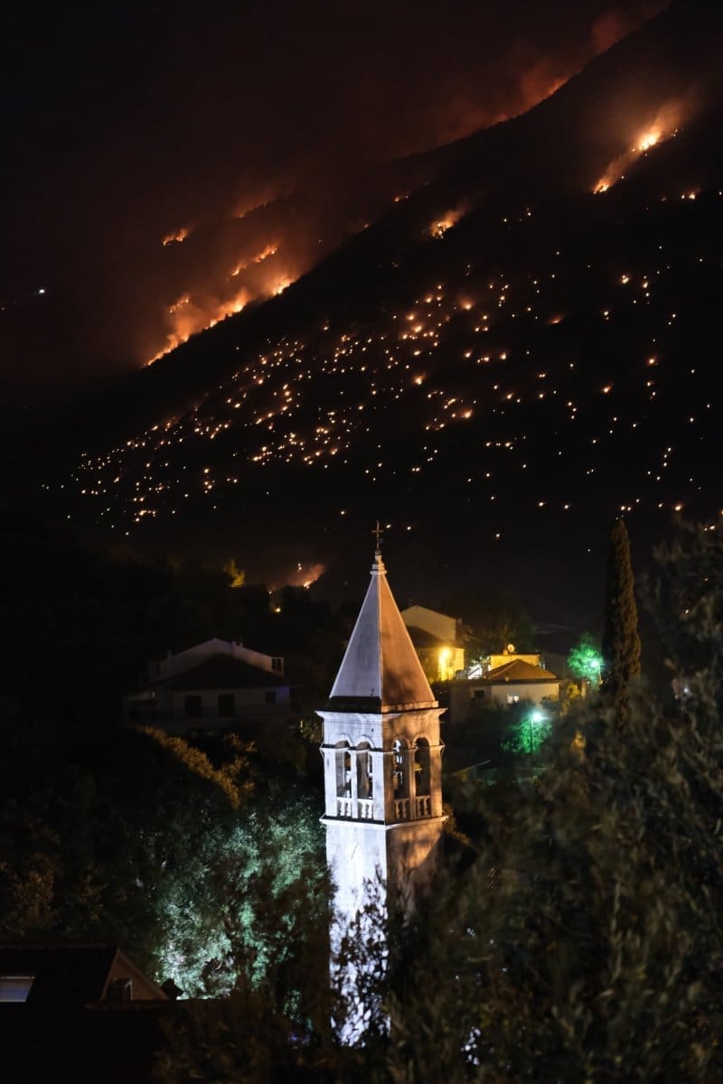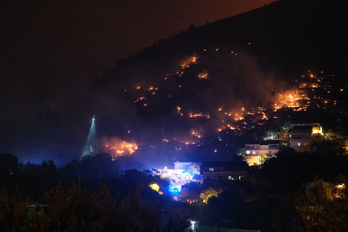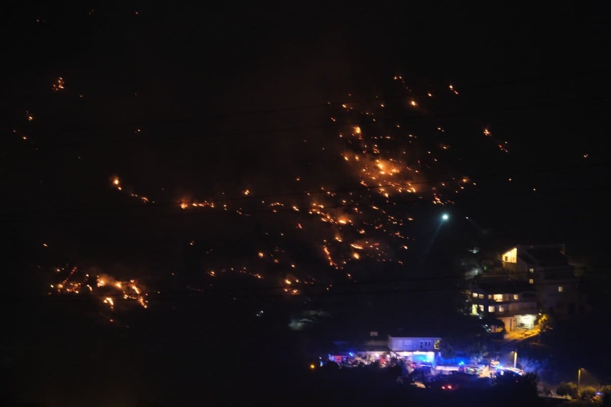 Požarna linija se nalazi između Žrnovnice i Donjeg Sitnog, fronta je duga nekoliko stotina metara, no za razliku od dnevnog požara, ovaj napreduje nešto sporije.