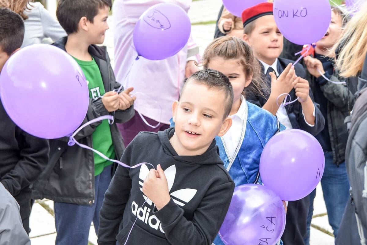 Točno u podne i pol, puštanjem stotinjak ljubičastih balona u zrak ispred zgrade splitskog rodilišta obilježen je "Svjetski dan prijevremeno rođene djece" malih "Palčića".