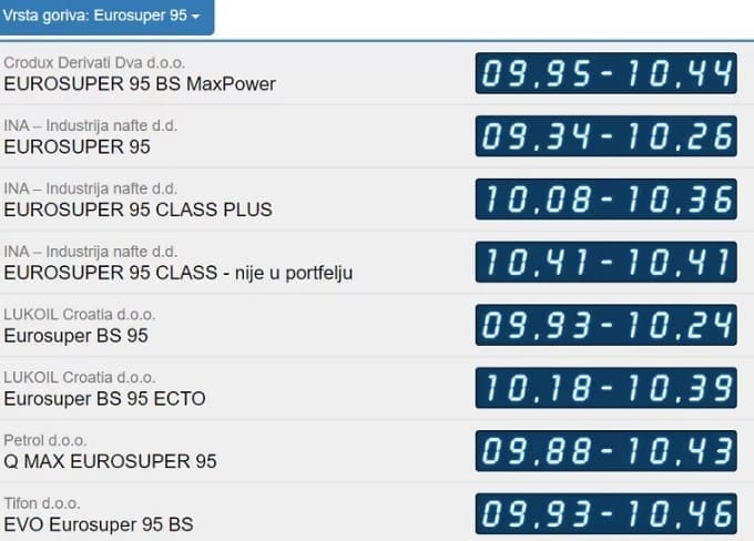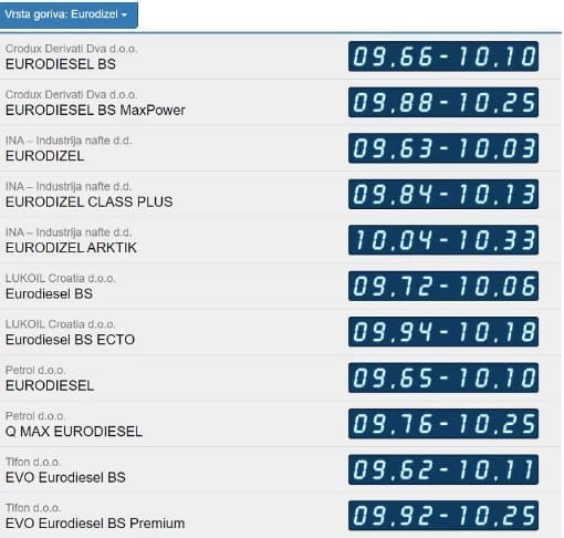 No dizelska goriva su pojeftinila značajnije. Litra dizela tako je jučer u prosjeku koštala 10,08 kuna. Danas je ta cijena 9,85 kuna, prenosi Index.