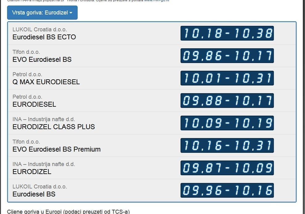 Litra dizela je iznosila 10,08 kuna po litri, a danas 10,05 kuna po litri u prosjeku.