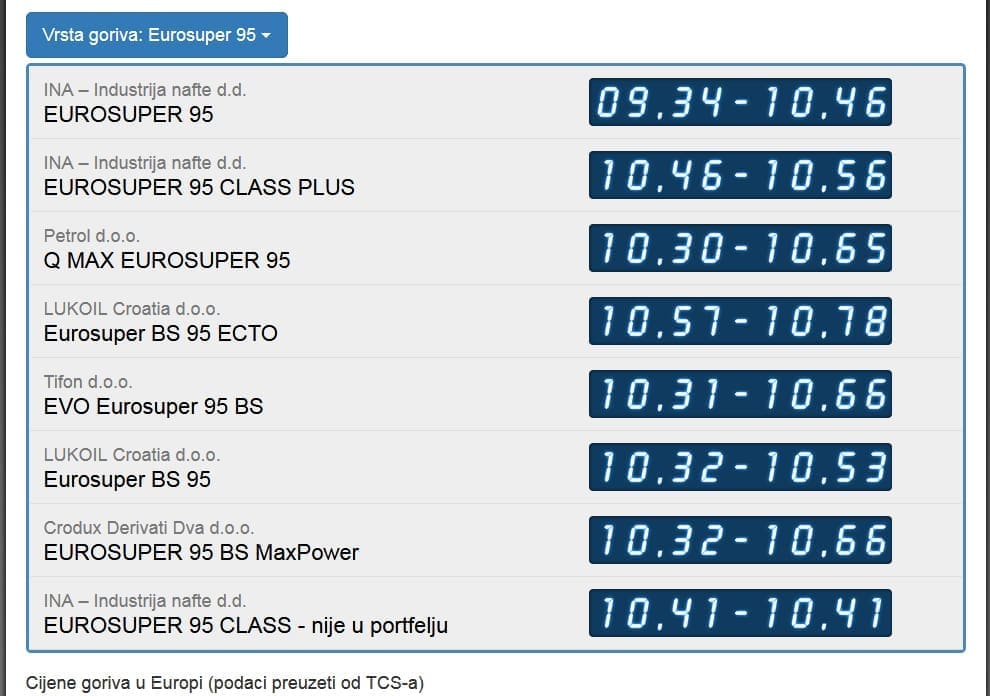 Autoklub je objavio cijene goriva po benzinskim pumpama. Izdvajamo najpopularnije, a detaljan pregled cijena možete naći ovdje.
