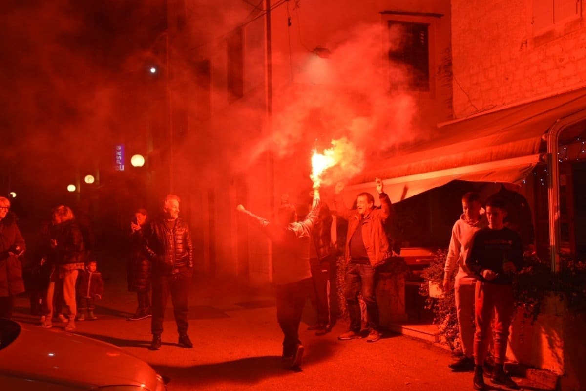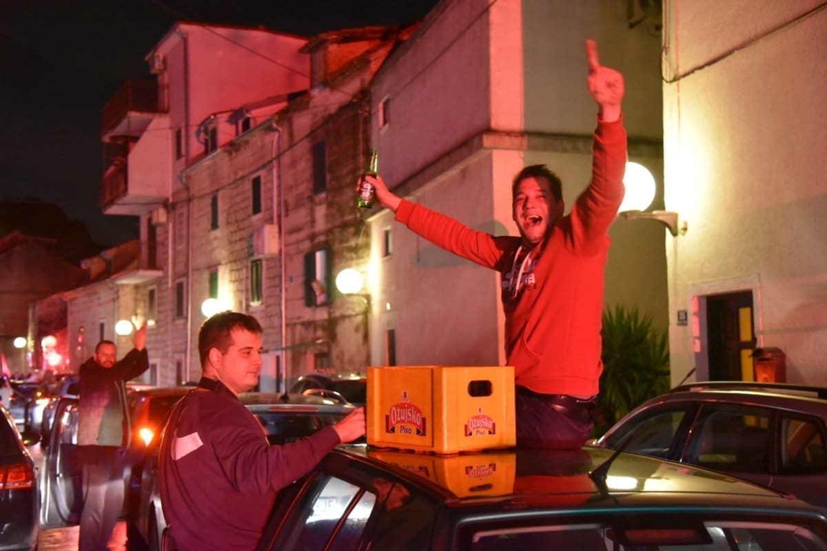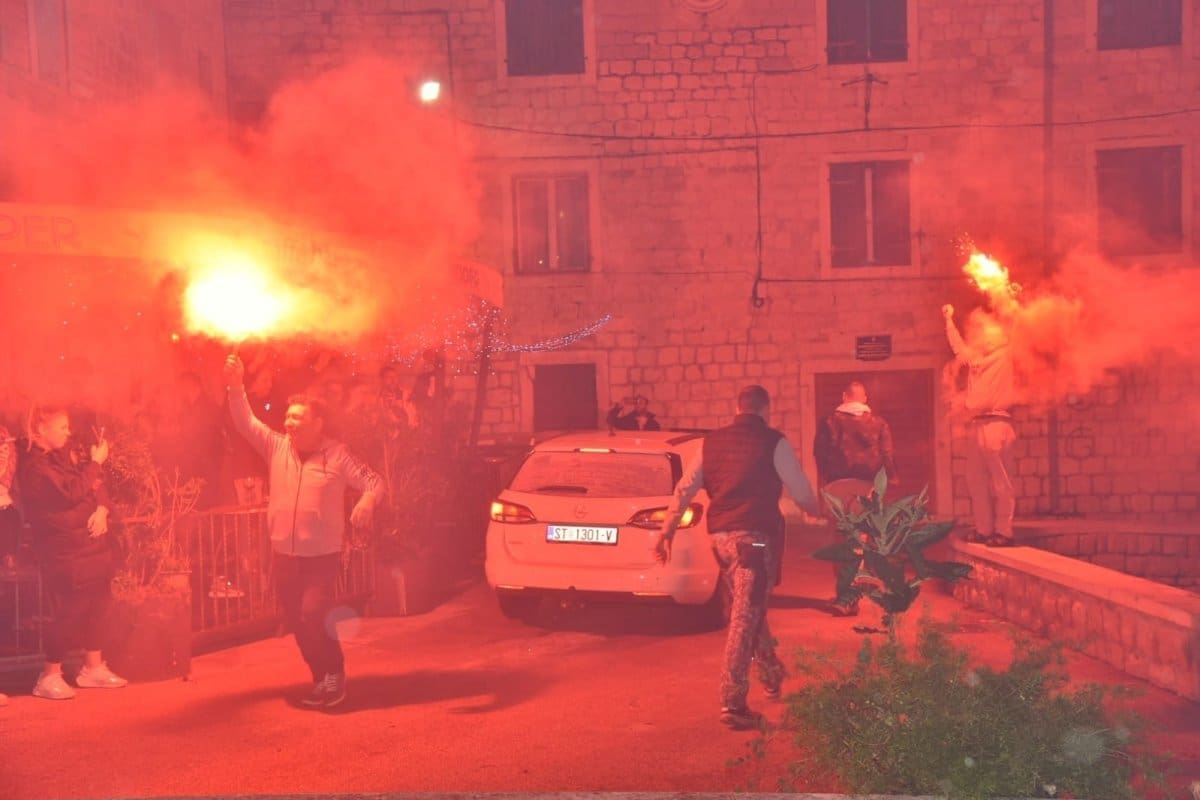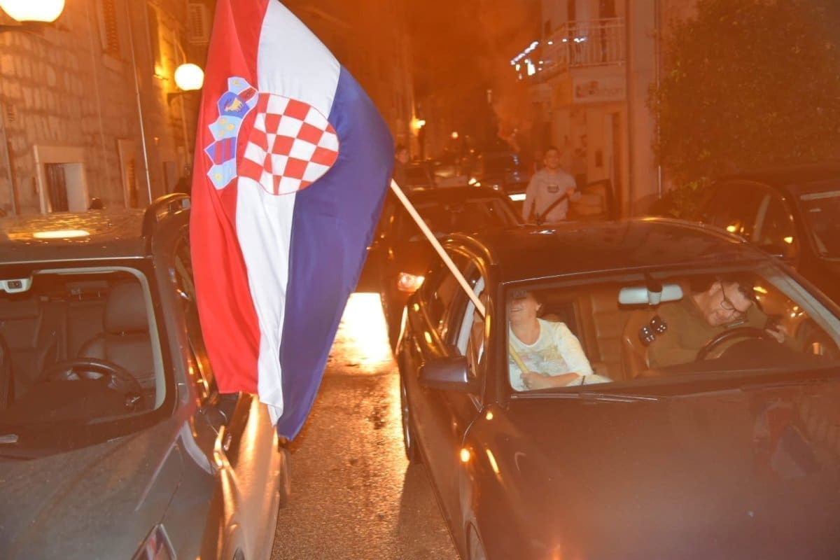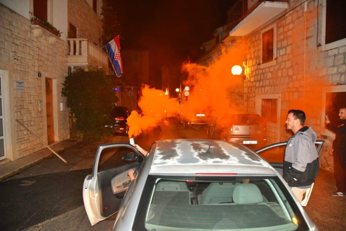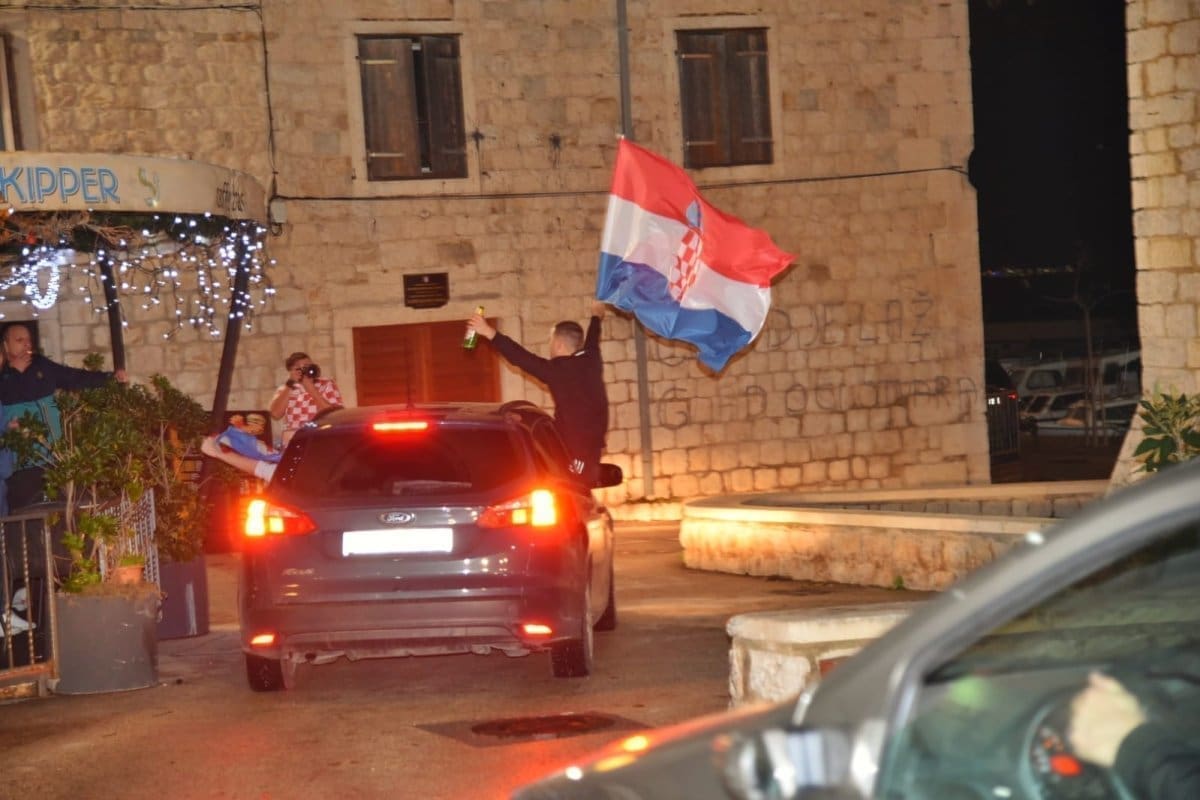 Žestoko slavlje nakon ulaska Hrvatske u polufinale uslijedilo je u Kaštelima. Građani su izašli na ulice, palile su se baklje, pjevalo se i skandiralo, a zastave su se viorile na svakom koraku.