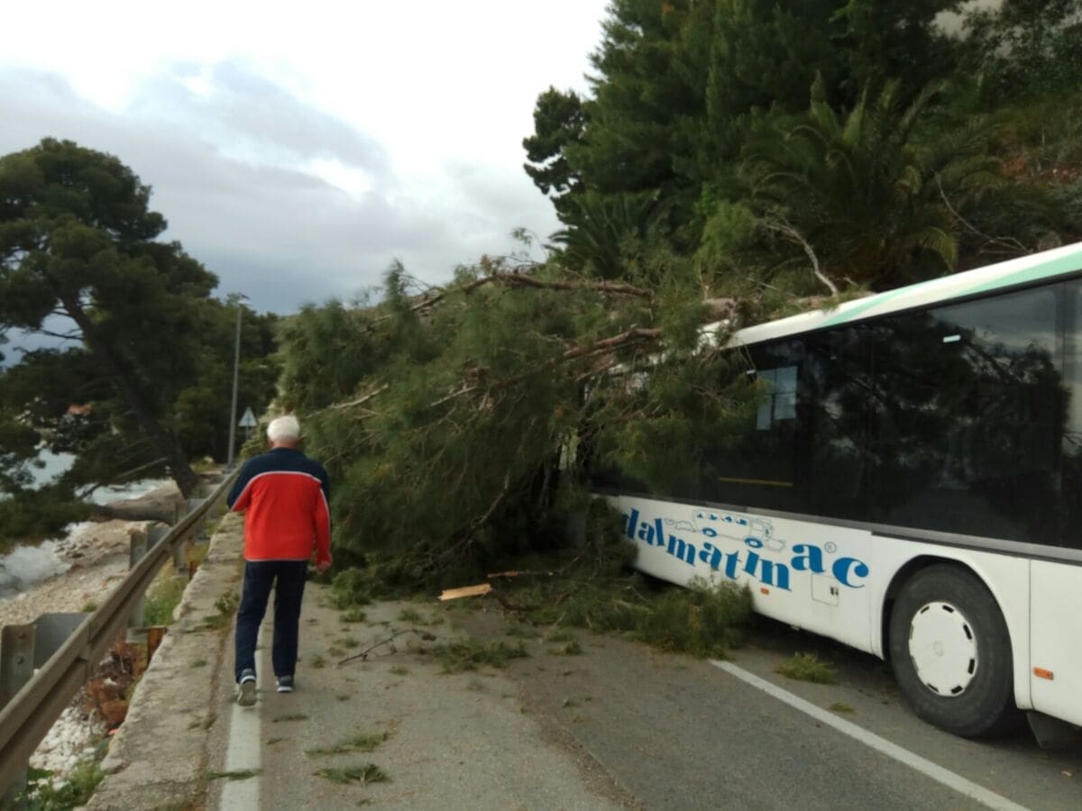 Oko 17:45 došlo je do pada bora na Jadransku magistralu kroz Krilo Jesenice. Stablo je palo na autobus tvrtke Dalmatinac.