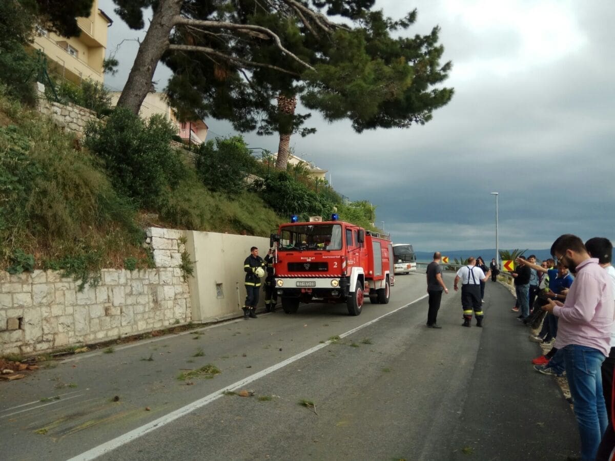Kako nam je kazao Pave Tomić, zapovjednik DVD-a Dalmacija iz Dugog Rata, na mjesto događaja stiglo je osam vatrogasca ovog vatrogasnog društva s dva vozila. Vatrogasci su stigli u rekordnom roku do mjesta događaja, otpilali grane, a zatim se pristupilo uklanjanju glavnog debla.