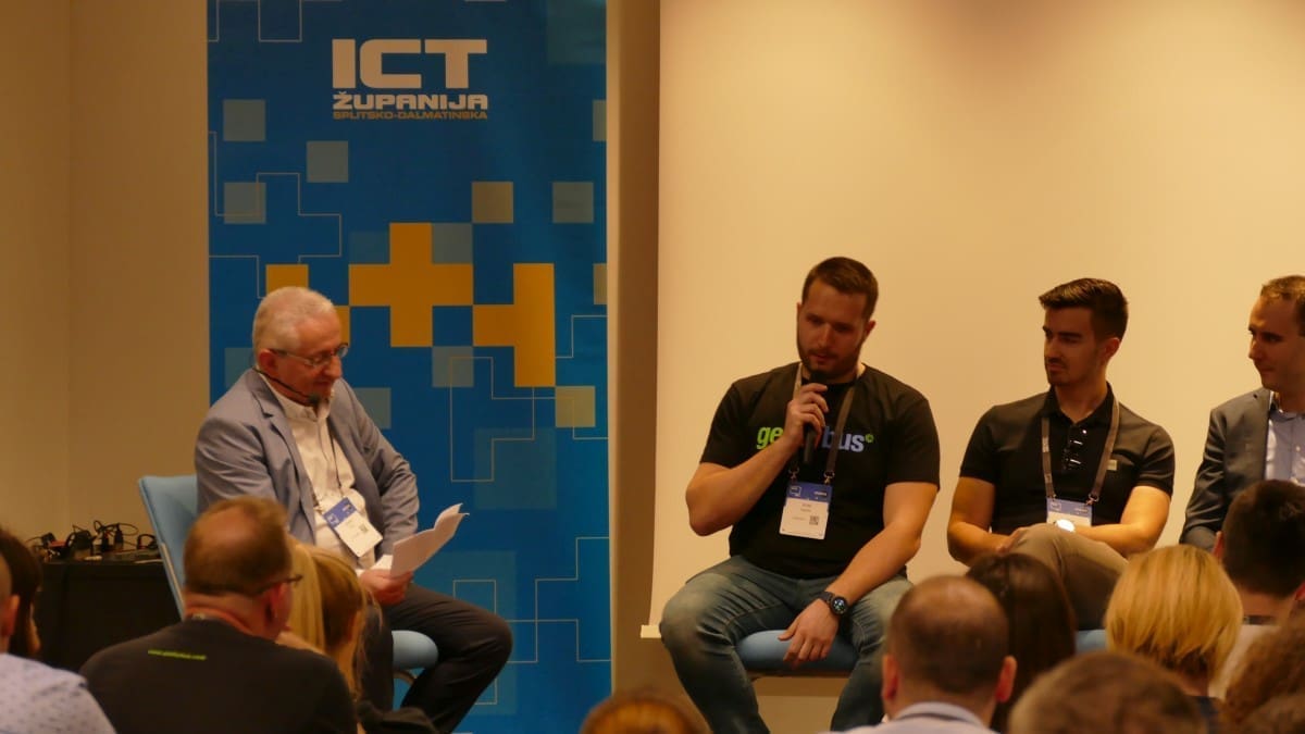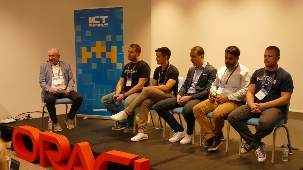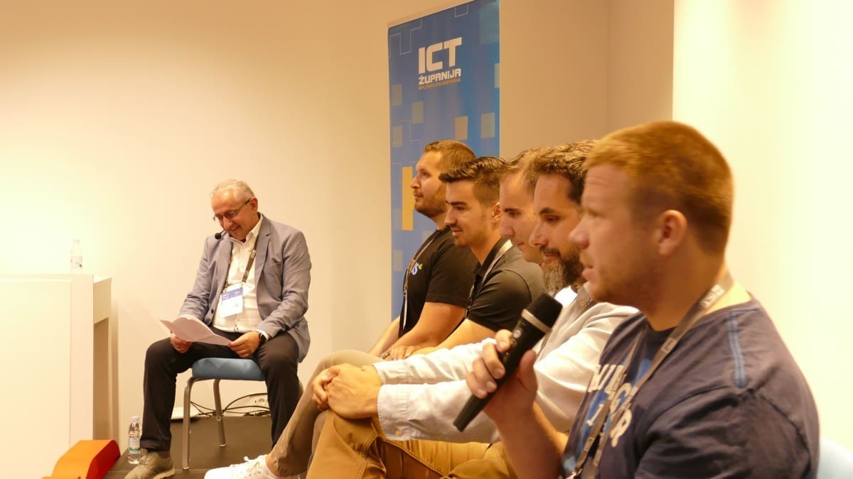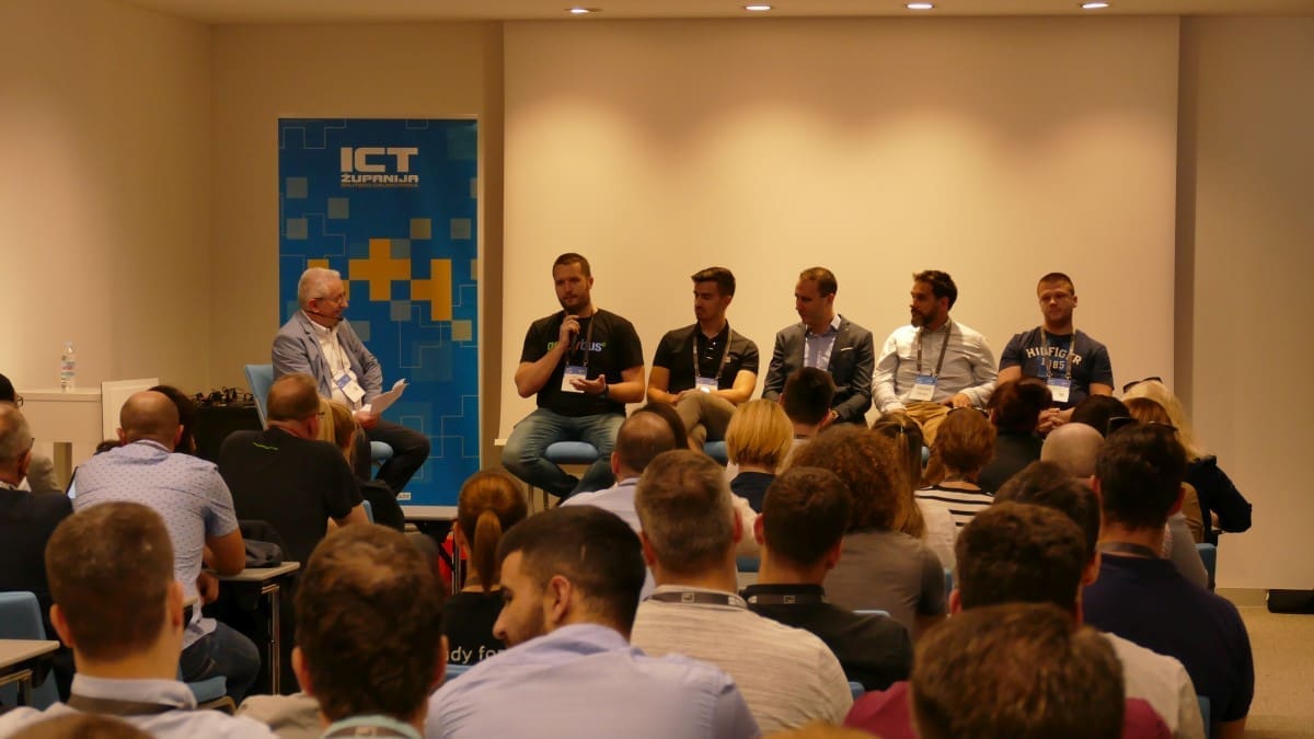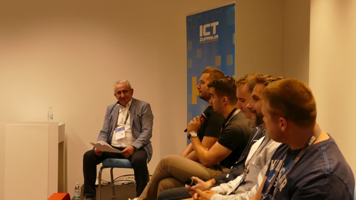 Splitski frontmeni redom uspješnih IT tvrtki, u panelu su odgovarali na pitanja Damira Brčića, voditelja projekta “ICT Županija”, sada u ulozi moderatora, kako su oni “pronašli” svog prvog stranog klijenta. I to redom Antonio Perić-Mažar (Locastic), Marko Barić (Typeqast), Aron Mišerda (Pseudocode), Vladan Strigo (NETmedia) i Ante Dagelić (GetByBus).