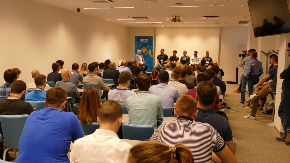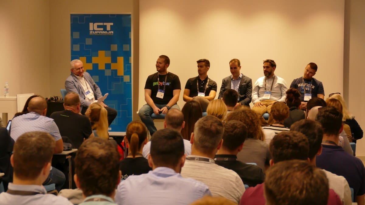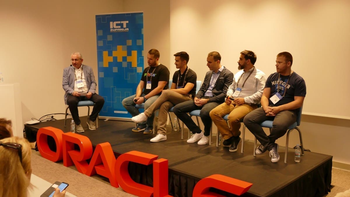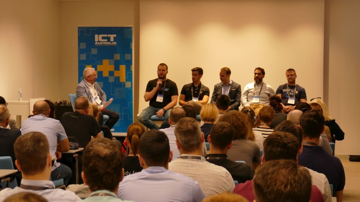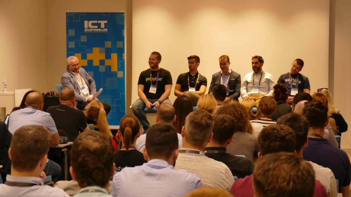 Splitski frontmeni redom uspješnih IT tvrtki, u panelu su odgovarali na pitanja Damira Brčića, voditelja projekta “ICT Županija”, sada u ulozi moderatora, kako su oni “pronašli” svog prvog stranog klijenta. I to redom Antonio Perić-Mažar (Locastic), Marko Barić (Typeqast), Aron Mišerda (Pseudocode), Vladan Strigo (NETmedia) i Ante Dagelić (GetByBus).