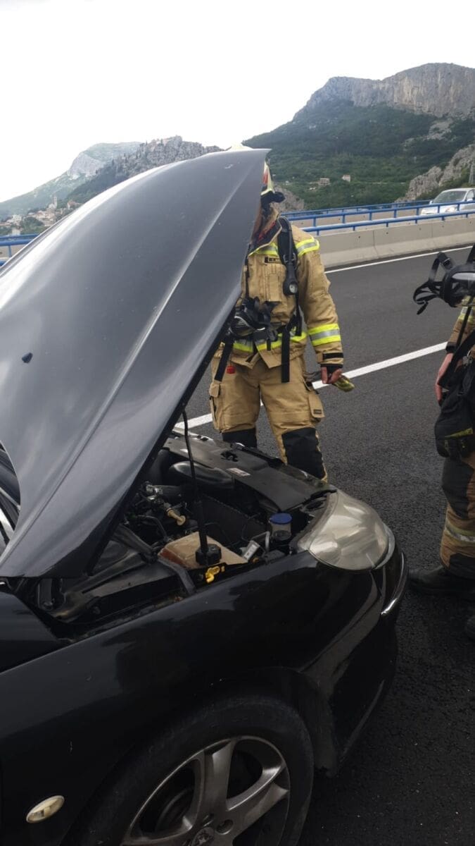 Oko 18 sati na brzoj cesti Solin-Klis jednom vozaču je 'prokuhao' auto.