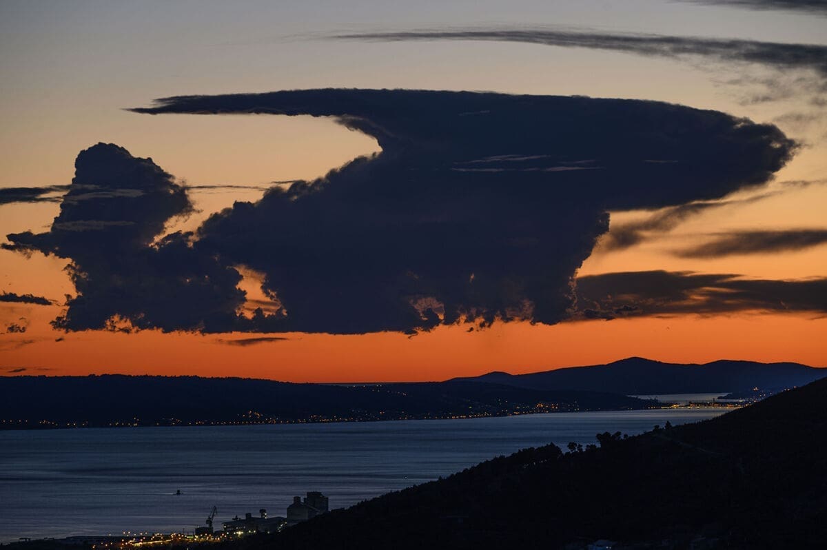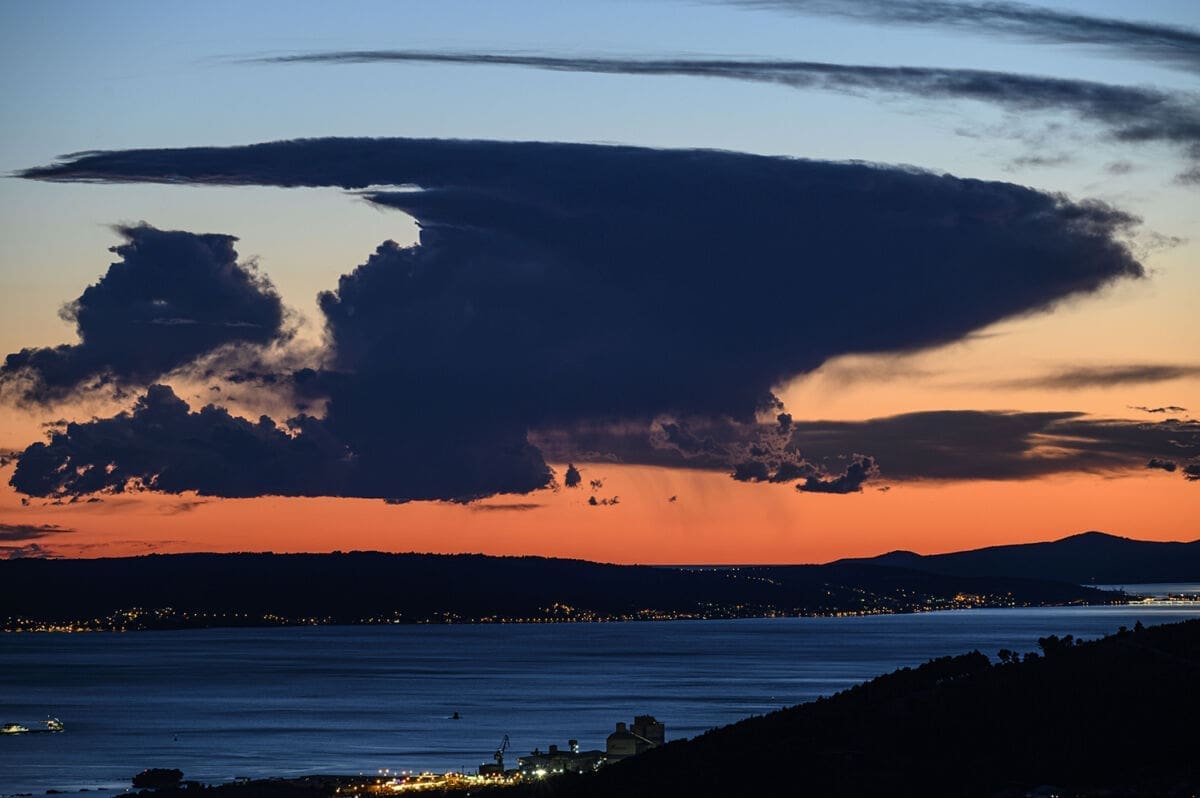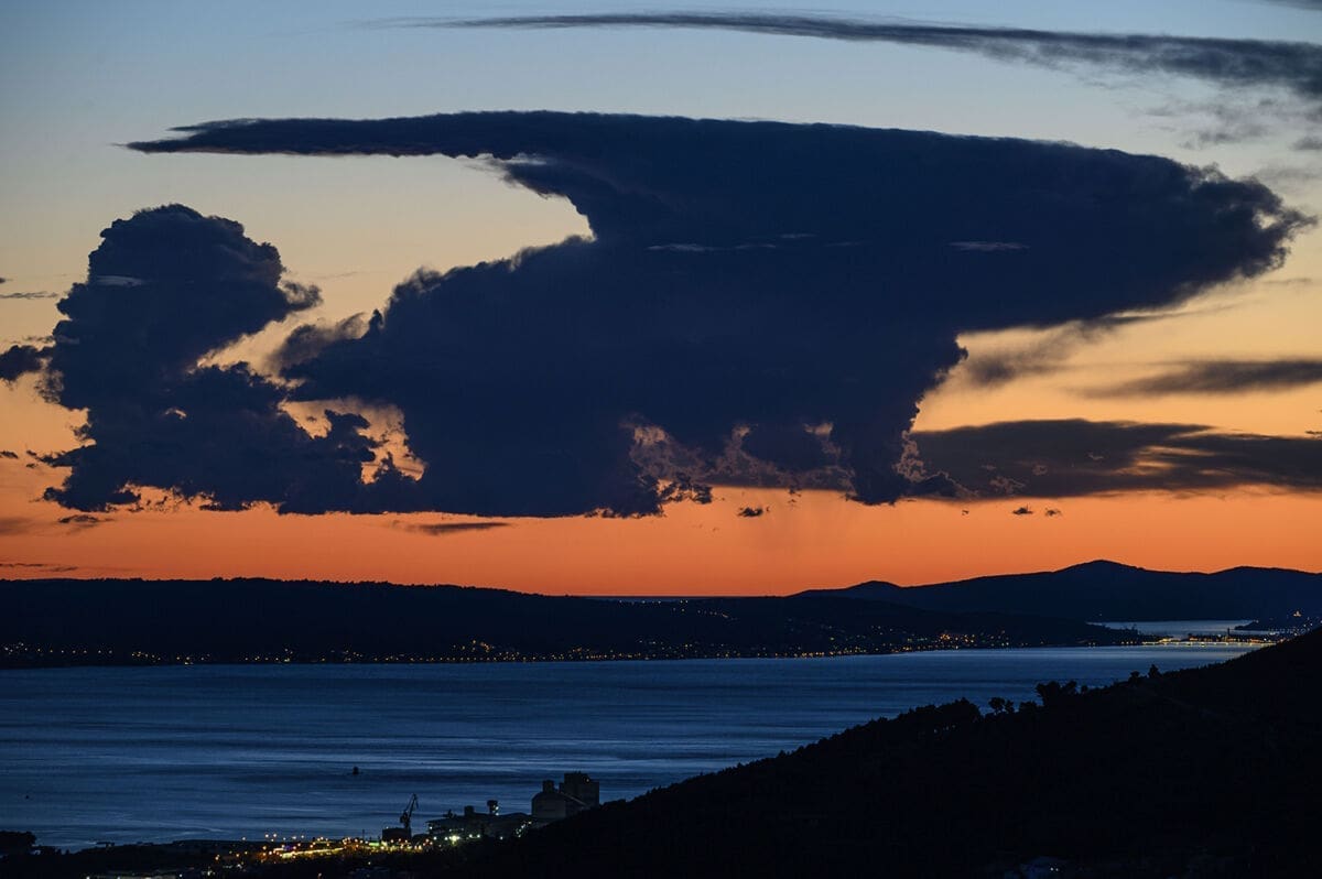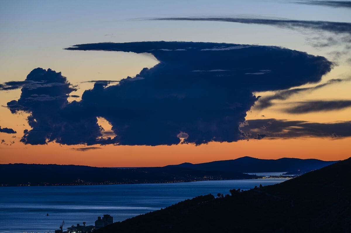 Protekle večeri boravili smo na Kliškoj tvrđavi odakle smo snimili predivne boje smiraja dana, ali i zanimljivih formacija oblaka. Naime, na zapadu se razvio manji kumulonimbus s karakterističnim nakovnjem kojega je vjetar po visini usmjeravao prema jugoistoku.