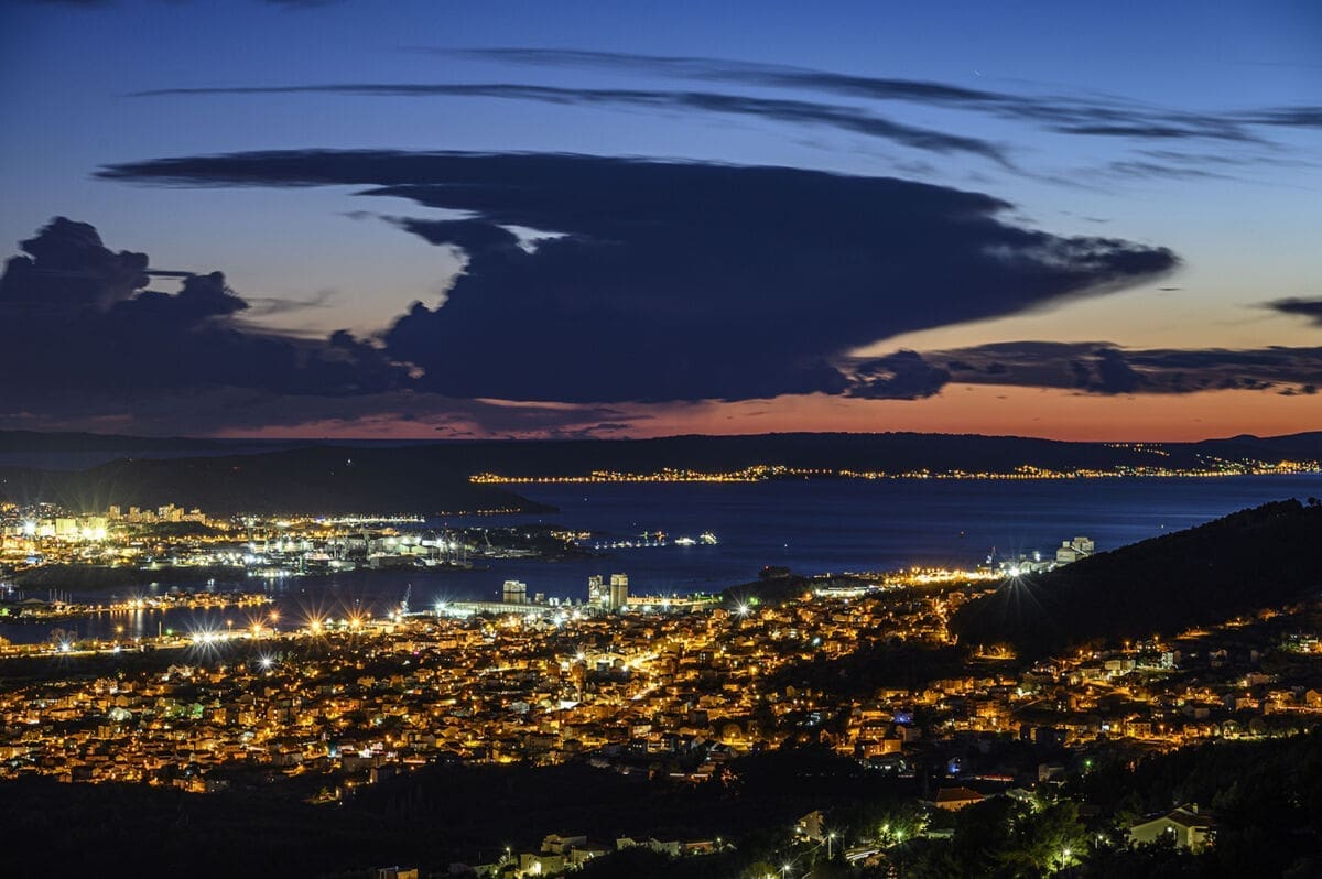 Svjetla Splita, Kaštela i otoka u vrijeme smiraja dana dala su poseban čar fotografijama, a padom noći na zapadnom nebu zasjao je mladi Mjesec.