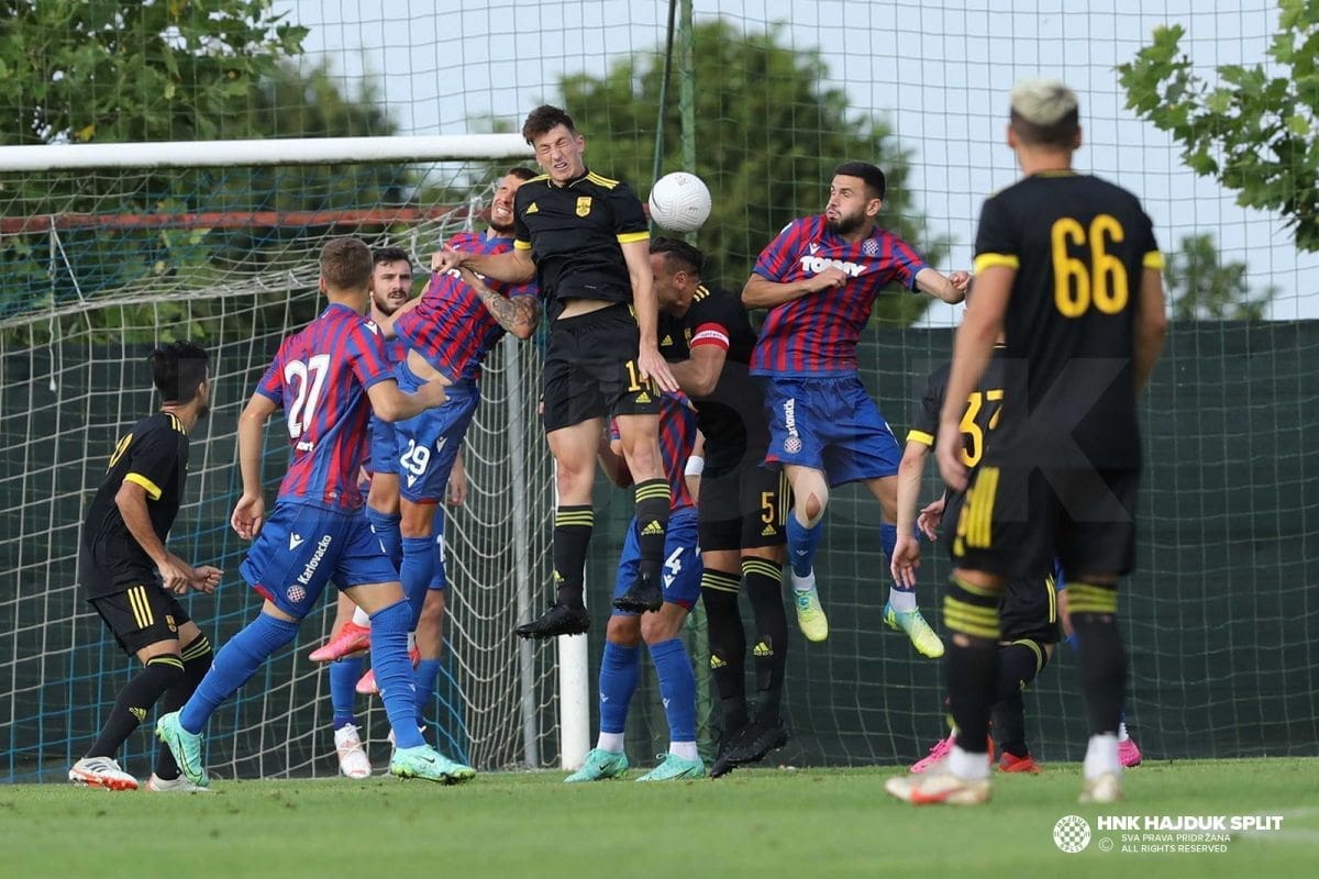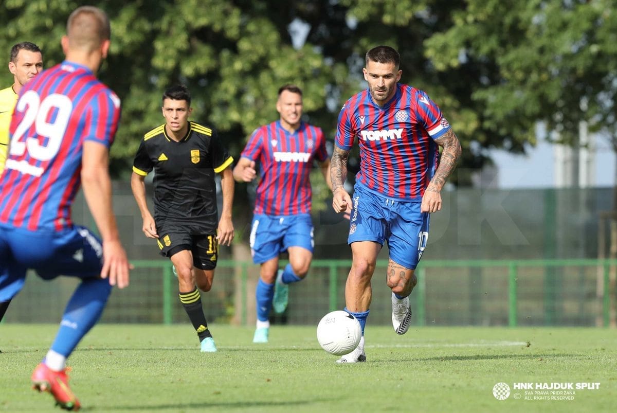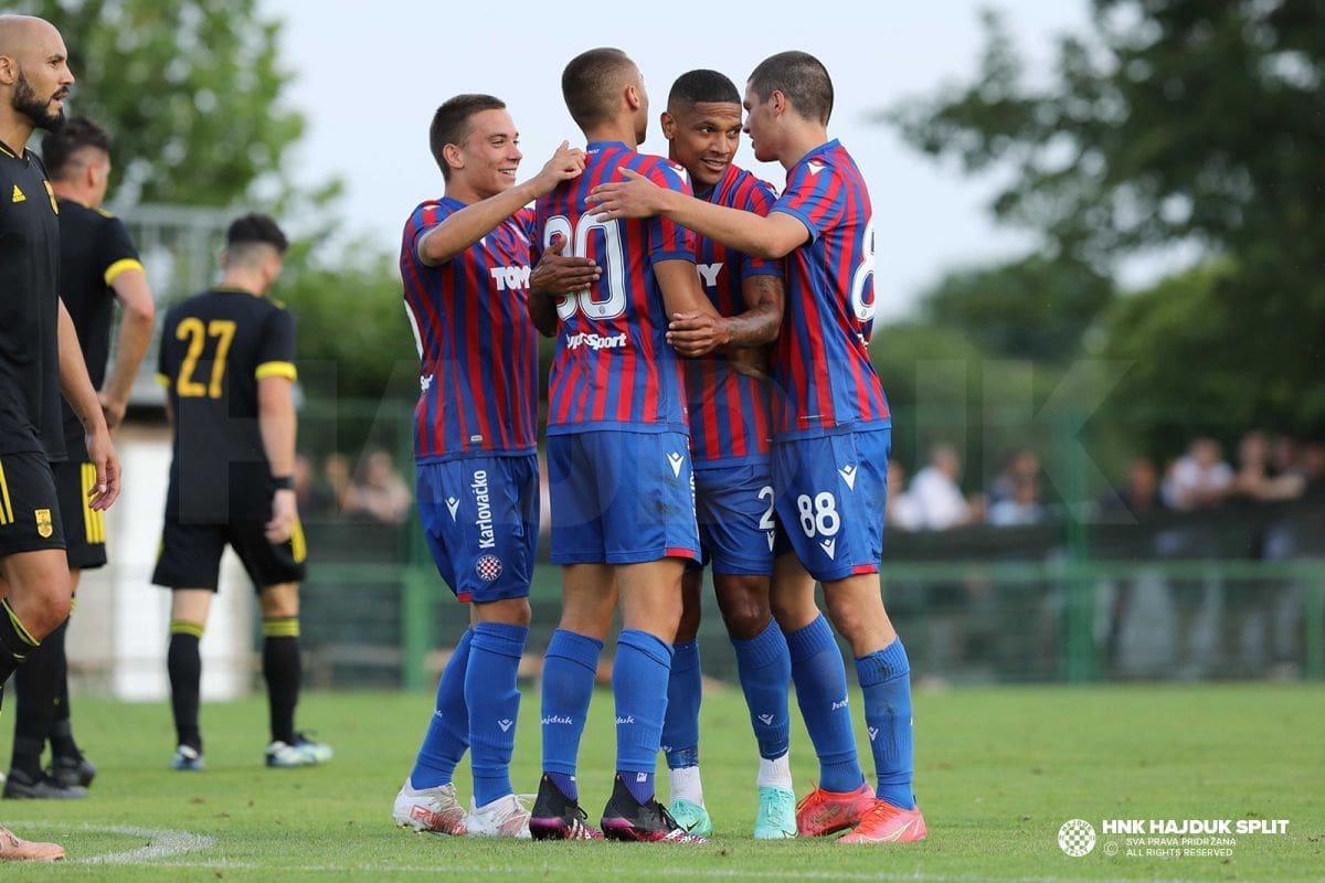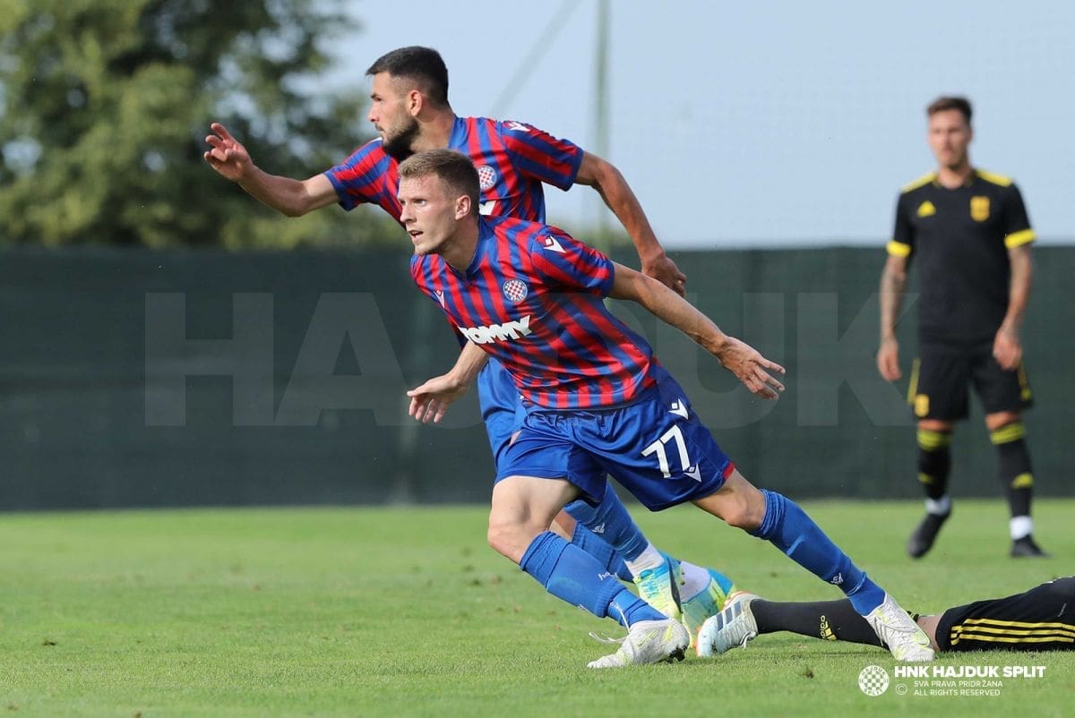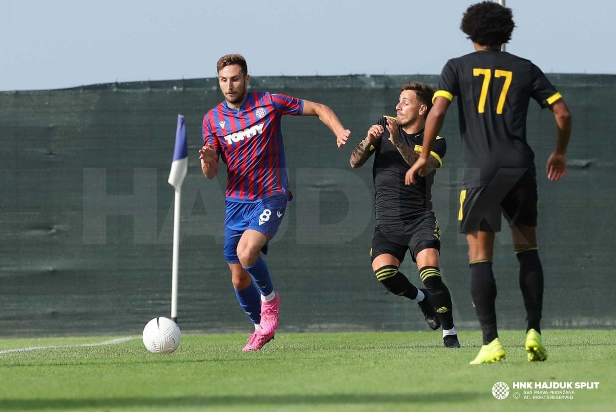 Nova dobra utakmica momčadi Jensa Gustafssona i nova pobjeda na pripremama u Sloveniji. Slavili su hajdukovci 3:1 protiv Arisa, trećeplasirane momčadi grčkog prvenstva. Bio je to najozbiljniji ispit na pripremama uoči početka sezone.