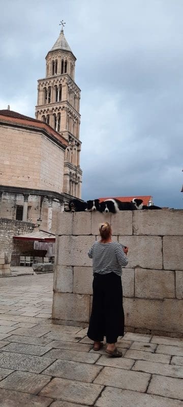 Sva četvorica su se popela za zidić na Peristilu te su mirno i strpljivo čekala da završi fotografiranje.