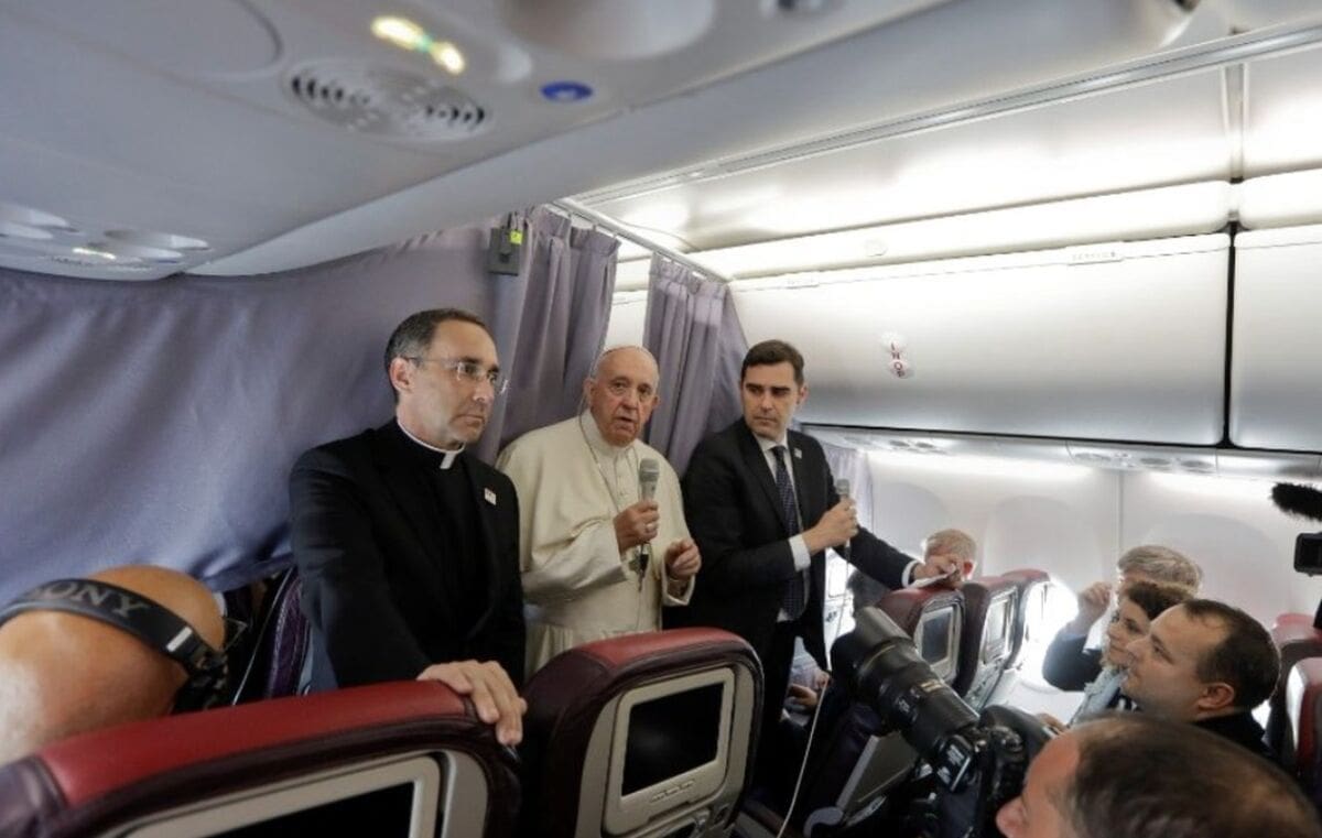 Tijekom leta iz Sibiua prema Rimu papa Franjo je po običaju odgovarao na pitanja novinara koji su ga pratili na njegovom trodnevnom apostolskom putovanju kroz Rumunjsku. Među brojnim osvrtima na samo putovanje, Papa je komentirao i najnoviji razvoj situacije u Europi, pozvavši i novinare da mole kako bi Europa postala onakva kakvom su je sanjali njezini utemeljitelji.
