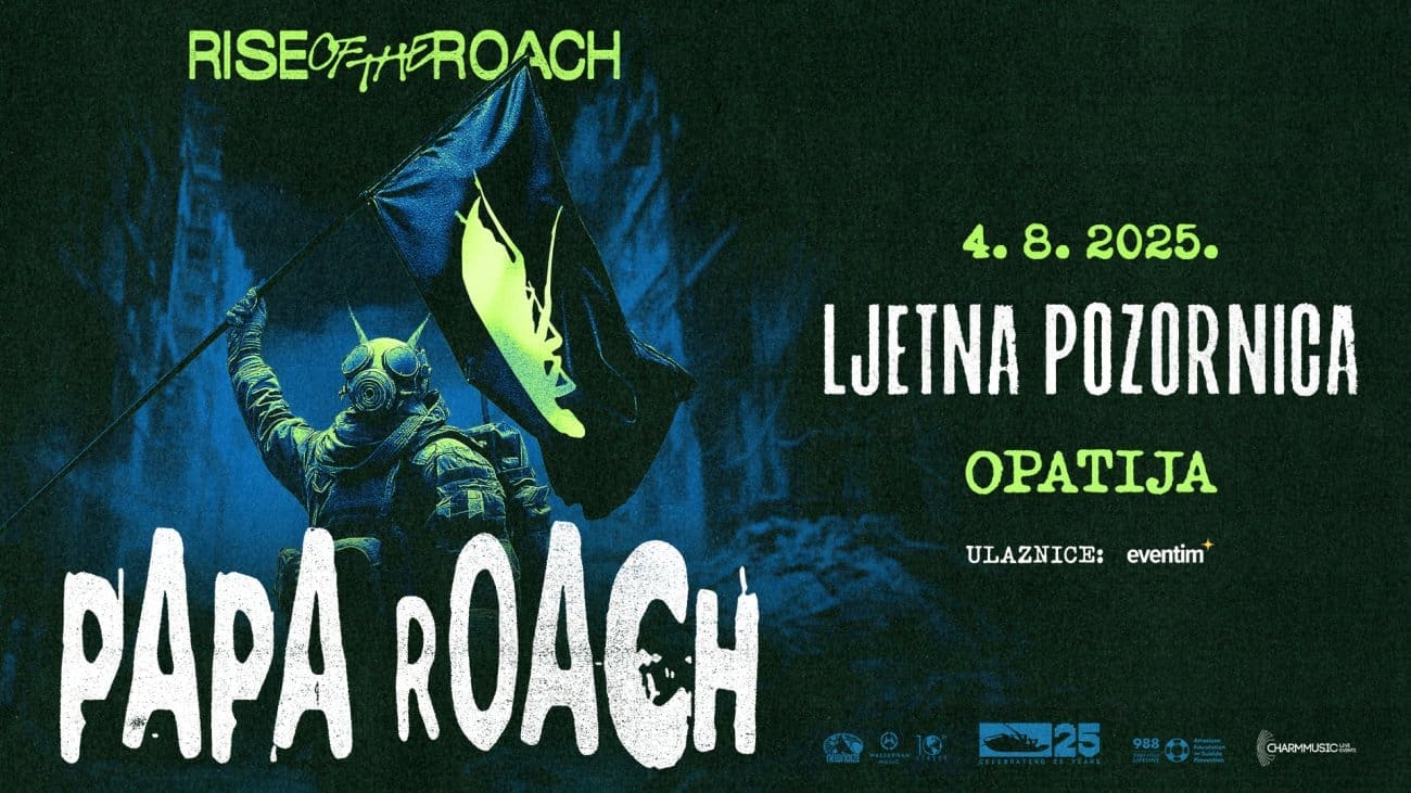 Papa Roach, pioniri alternativnog hard rocka premijerno stižu u Hrvatsku 4. kolovoza 2025. i to na jednu od najljepših pozornica Jadrana - Ljetnu pozornicu u Opatiji! Svjetska turneja pod nazivom “Rise of the Roach Tour” koja je krenula krajem siječnja iz Berlina bit će velika proslava 30. godišnjice benda i 25. godišnjice njihovog revolucionarnog albuma Infest. Nakon rasprodanih dvorana u Ujedinjenom Kraljevstvu i Europi, turneja će nastaviti u sjevernoameričkim arenama i amfiteatrima, a na ljeto se Papa Roach ponovno vraćaju u Europu i prvi put nastupaju i u Hrvatskoj. Ulaznice kreću u pretprodaju 19. veljače u 10 sati putem službene stranice benda, od 20. veljače bit će dostupne preko Eventim newslettera, a službena prodaja počinje 21. veljače putem Eventima.