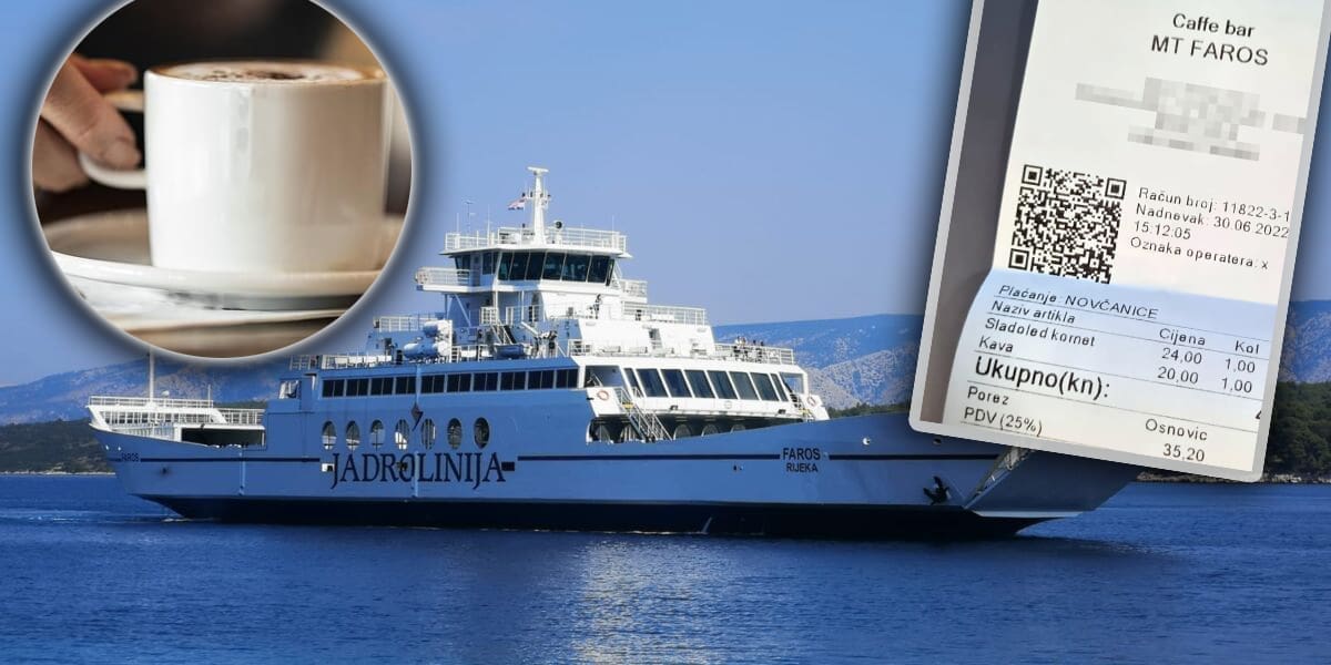 Da su cijene hrane i pića na Jadrolinijinim brodovima više od onih po kafićima, zna se oduvijek, no čitateljica koja je danas putovala na ovoj liniji koja spaja Split i Stari Grad na Hvaru, neugodno se iznenadila kada je dobila račun.