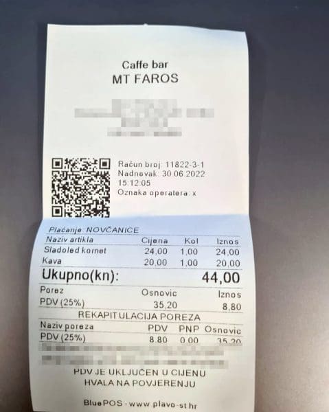 - Kupila sam malu kavu i obični sladoled u kafiću "MT Faros" u salonu trajekta Faros. Znam da je kava skuplja, ali nisam baš očekivala da će mala kava koštati čak 20 kuna. Uz obični sladoled, račun me je došao 44 kune - kazala nam je čitateljica.