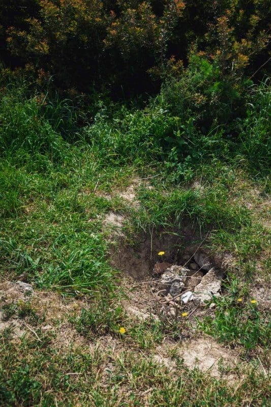 Na mjestu ove kućice bio je zahod moga djeda, a sada je narkomansko gnijezdo. Prije 10-ak dana sam taj dio i zapalio, da mi se narkomani maknu s posjeda, a unutra su i narkomanske šprice. Tu je prije bio neki kauč, oni su se tu 'furali'. Djeca izađu iz škole, oni izađu sa špricama. Osim toga, šetači pasa ostavljaju nered iza sebe, pseći izmet u plastičnim vrećicama bacaju u jednu od rupa, sve je puno bakterija", pojašnjava naš sugovornik.