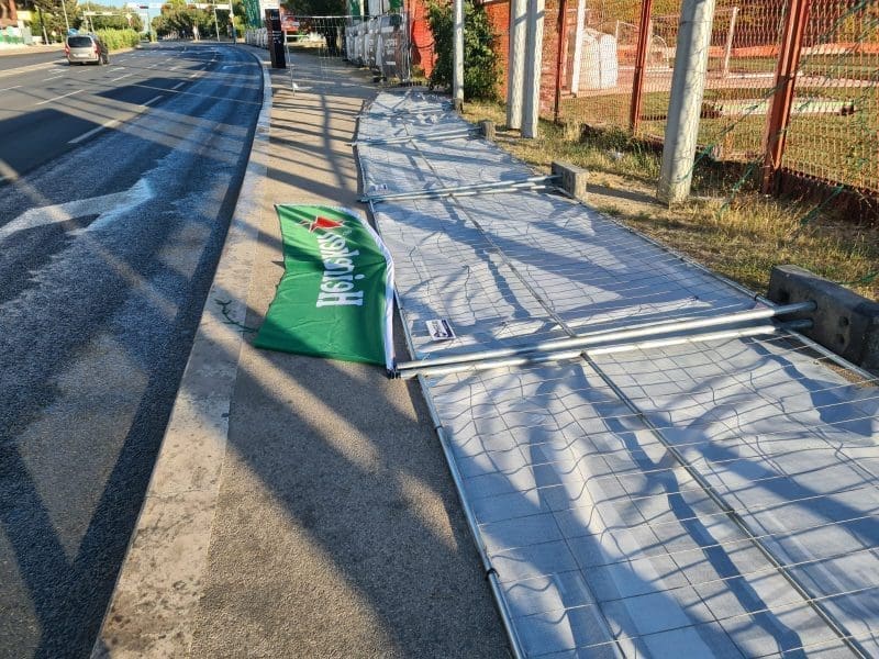 Jaka bura sigurno im je otežavala posao, a koliko je jako puhalo svjedoči i činjenica da je dio zaštitne ograde od strane Ulice Hrvatske mornarice - pao na tlo.