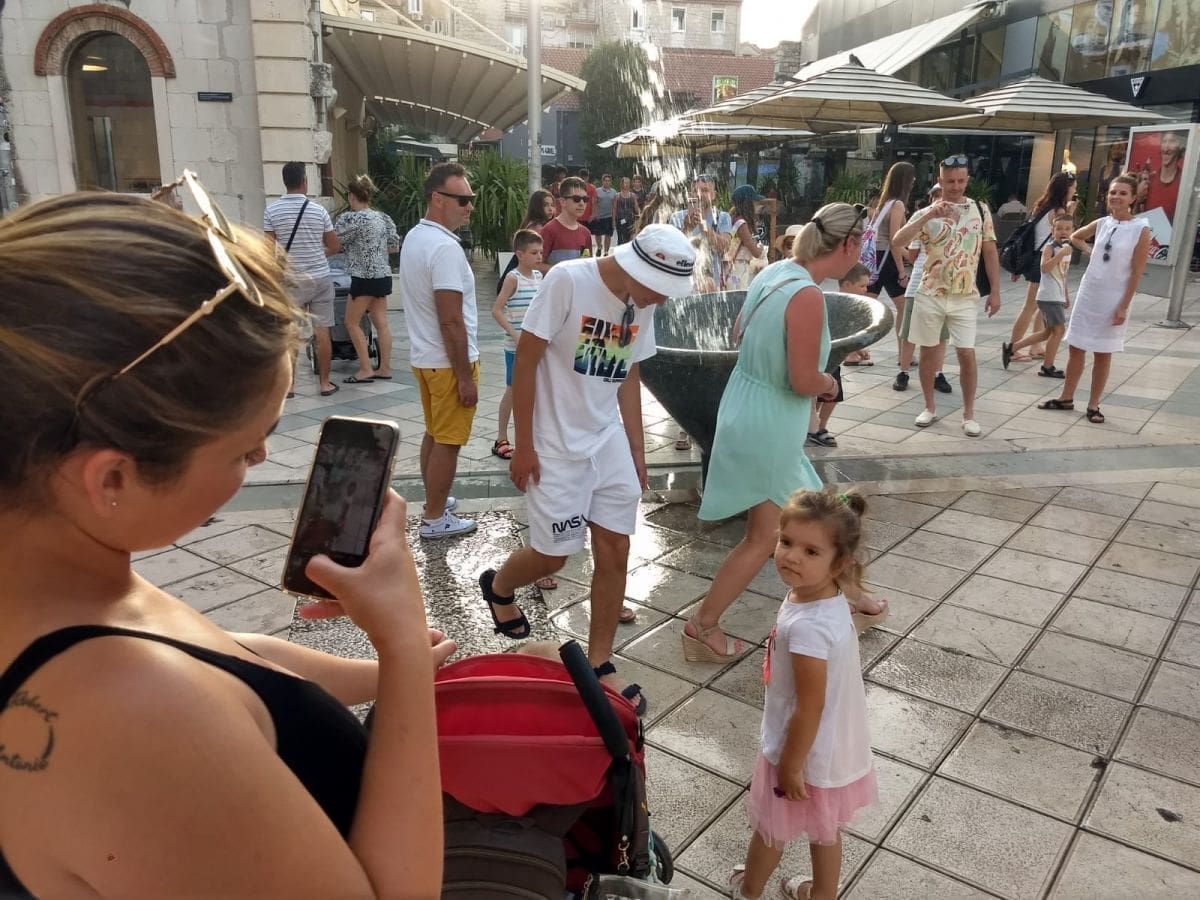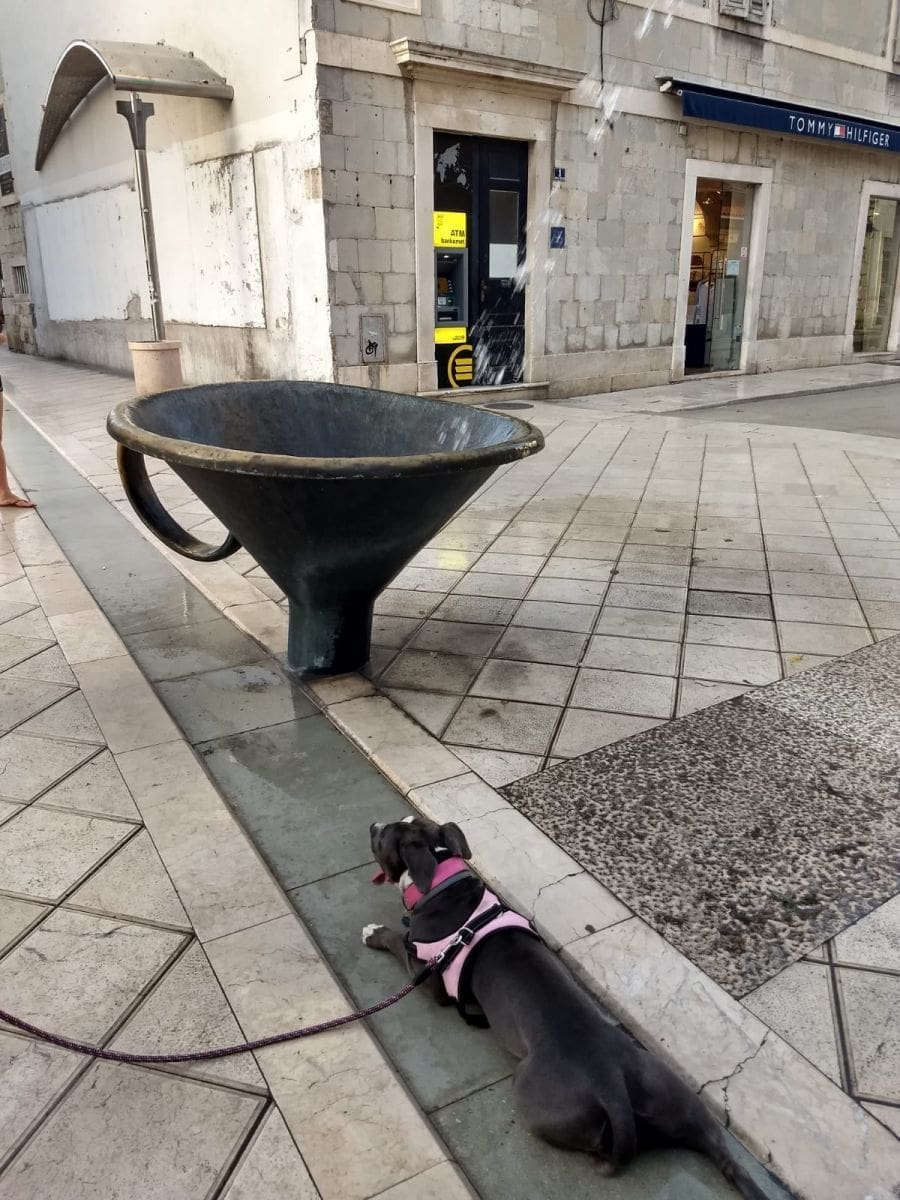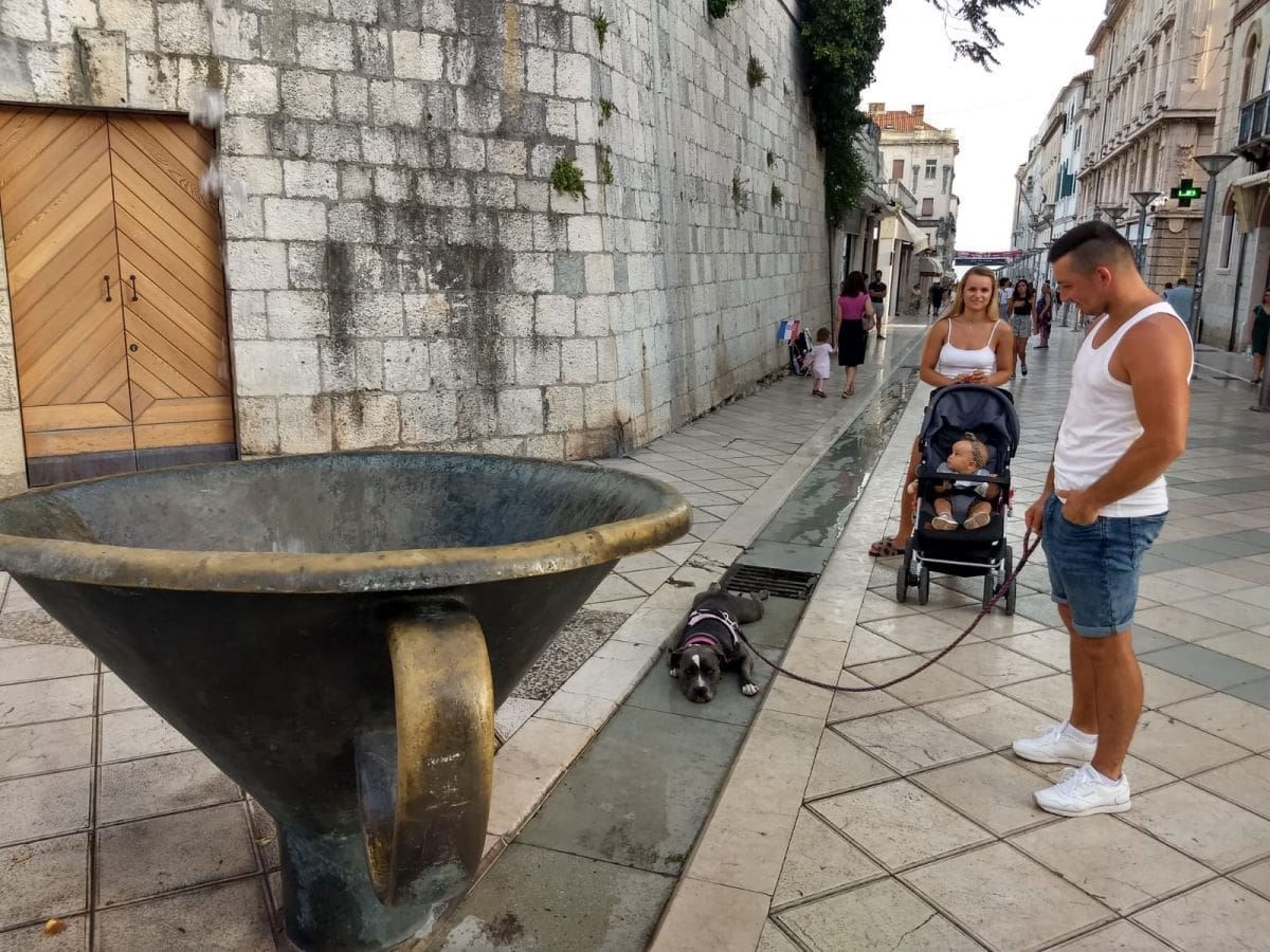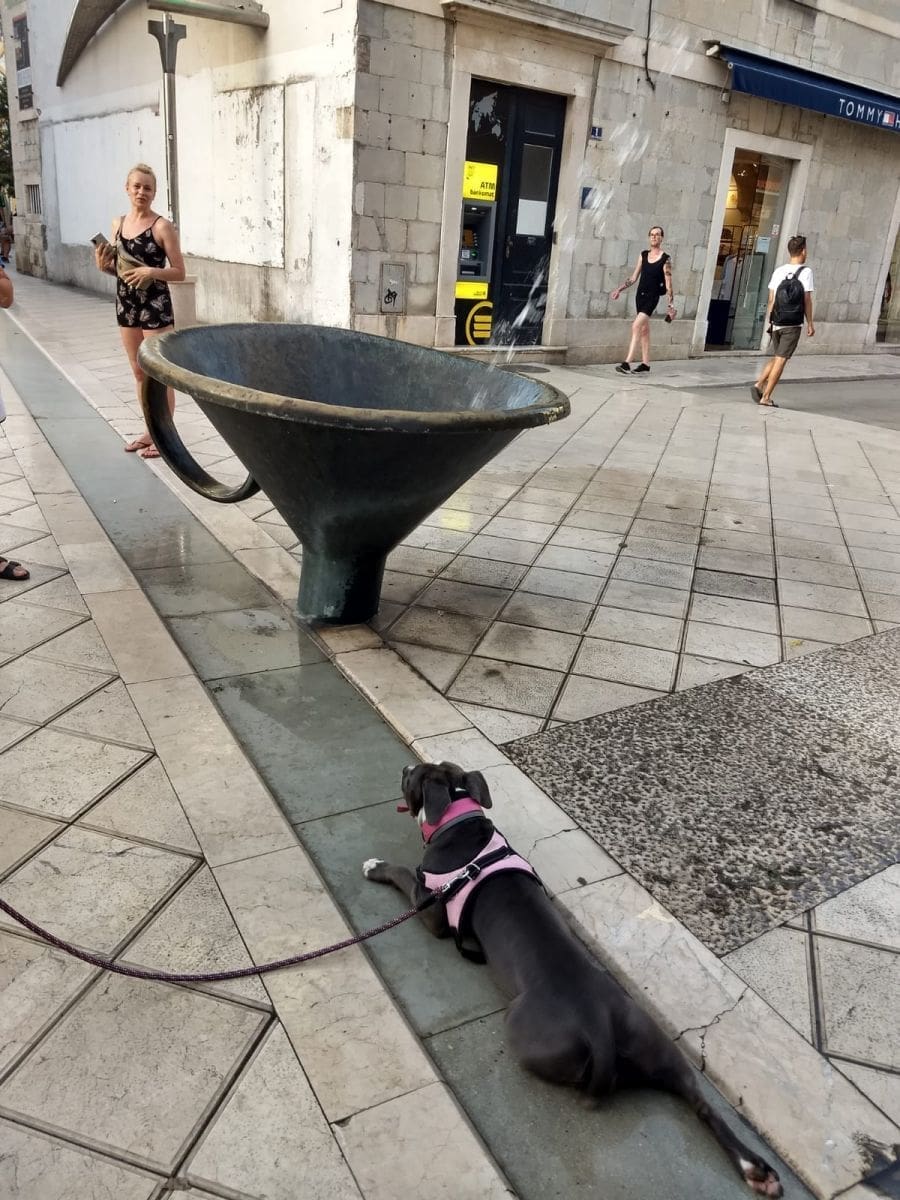 U centru Splita se predvečer mogao vidjeti dobar broj turista, a gotovo svaki turist je žeđ utažio u poznatom lijevku ili pirji u Marmontovoj ulici. Brončana skulptura je prepoznatljiv sadržaj Splita, a otvorena je sada davne 1998. godine.